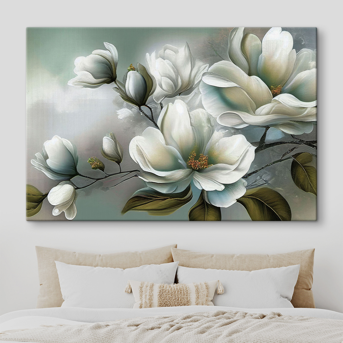 Wyobraź sobie taką sytuację: siedzisz na kanapie z ulubionym drinkiem w ręku, a na ścianie wisi wspaniały obraz przedstawiający białe kwiaty. To idealne połączenie spokoju i elegancji, które przekształca każdą przestrzeń w oazę spokoju. Ten wydruk na płótnie wygląda tak, jakby ktoś wziął delikatny pędzel i przeniósł spokój porannego ogrodu bezpośrednio na tkaninę. Szerokie płatki, tak żywo namalowane, wydają się niemal dotykalne!