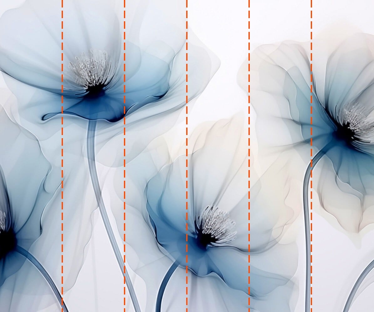 Tapeta zostanie przygotowana zgodnie z wymiarami podanymi w procesie zamawiania. Płótno zostanie podzielone na wygodne sekcje, każda o szerokości do 50 cm.