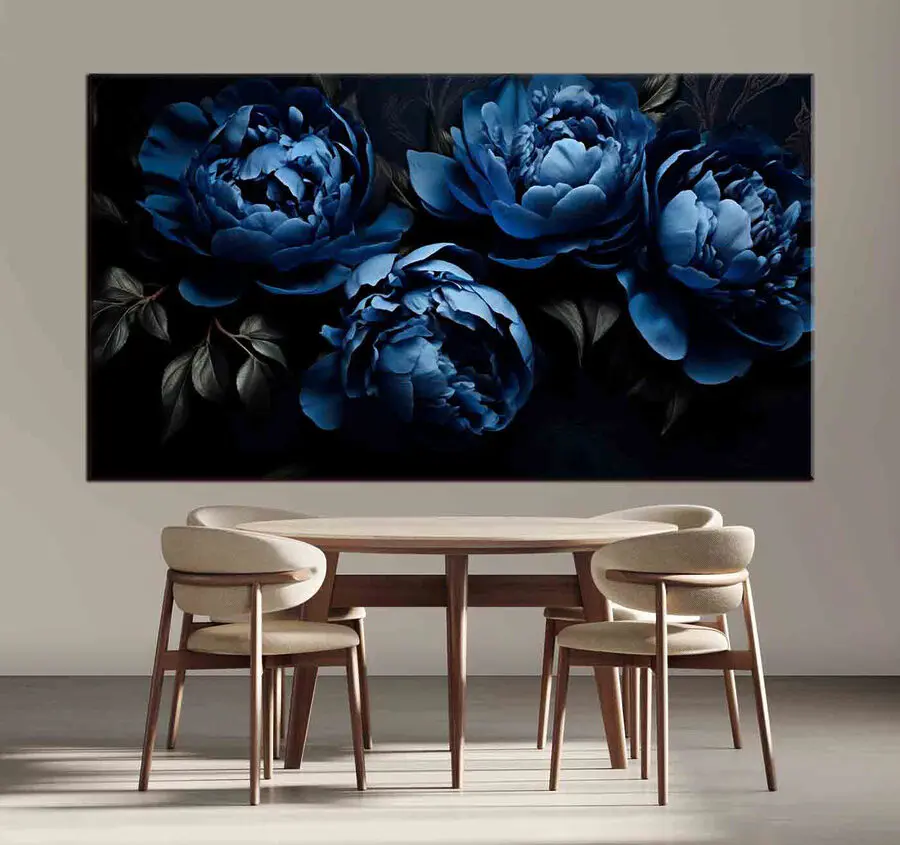 Wyobraź sobie to wiszące na ścianie – “Obraz Blue Petals with Soft Textures”. To jak zanurzenie się w sennym morzu niebieskich kwiatów za każdym razem, gdy przechodzisz obok. Te kwiaty wyglądają, jakby delikatnie się kołysały, prawda? Idealne do tego pustego miejsca w salonie lub nawet przedpokoju. Głębokie niebieskie odcienie i miękkie tekstury mają ten uspokajający, niemal kojący klimat. Z łatwością może to być element, który pobudza rozmowy podczas przyjęć. I szczerze? Kto nie kocha odrobiny sztuki inspirowanej naturą, aby rozjaśnić swoją przestrzeń!