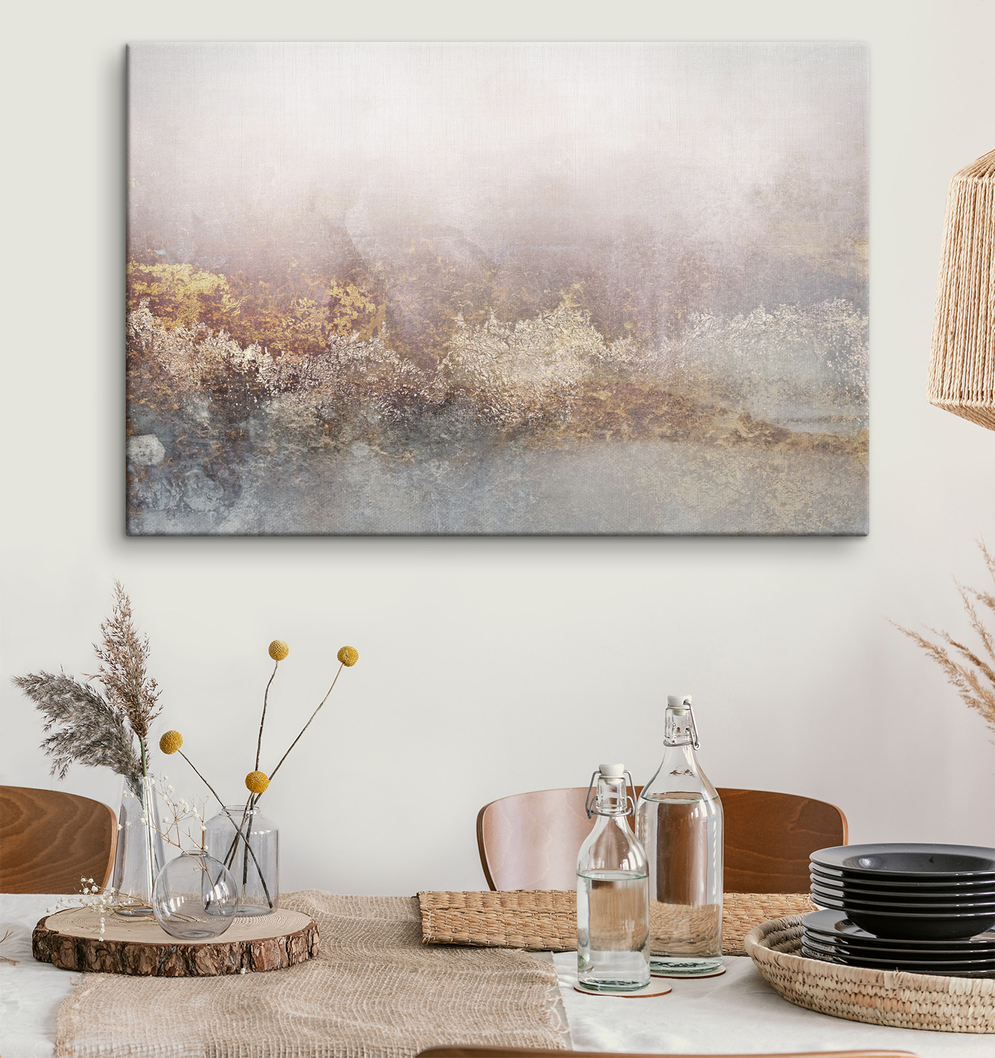Wyobraź sobie, że za każdym razem, gdy spojrzysz na ten wydruk na płótnie, znajdziesz się w spokojnym miejscu. Dzięki stonowanym tonom i delikatnym odcieniom, wprowadza on uspokajającą atmosferę, która przypomina delikatny uścisk. Wyobraź sobie przytulny kącik do czytania lub nowoczesny loft – ten obraz pasuje do każdego wnętrza, bez wysiłku łącząc się z różnymi stylami. Jest jak szept natury, dzięki czemu każda ściana nabiera głębi i charakteru. Idealny do zainicjowania rozmowy lub po prostu cieszenia się spokojnymi chwilami, ten nadruk zachęca do marzeń i nostalgii. To nie tylko dekoracja; to mały kawałek spokoju dla twojego domu.