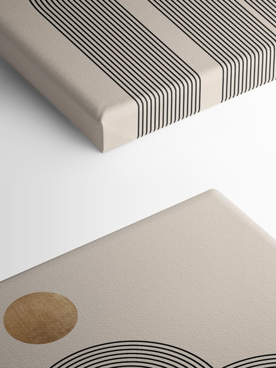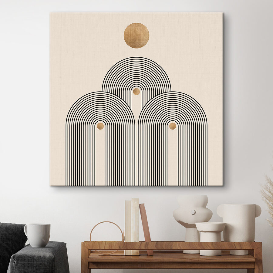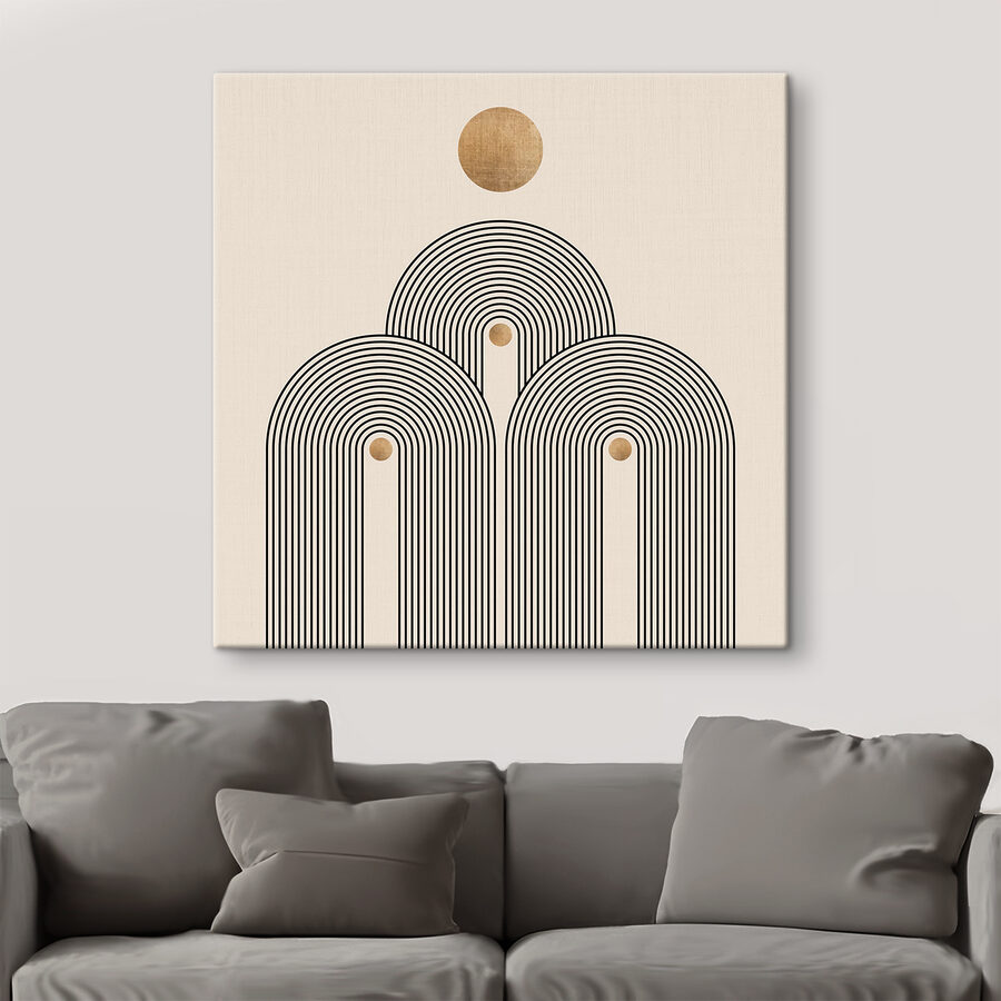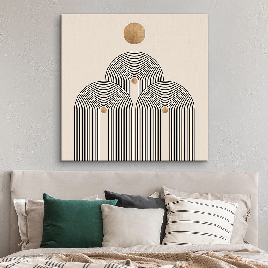 Rozjaśnij każdą ścianę dzięki temu drukowi na płótnie z zabawnym okrągłym wzorem otoczonym odważnymi czarnymi liniami. To trochę jak nowoczesne dzieło sztuki, które sprawia, że zastanawiasz się nad ważnymi życiowymi pytaniami, a jednocześnie chcesz po prostu napić się kawy. Neutralne tło sprawia, że wzór ten idealnie pasuje do przytulnego kącika, a nawet do tętniącego życiem salonu. Wyobraź sobie pogawędkę z przyjaciółmi pod jej urokiem, a może odnalezienie zen podczas cichej chwili, pozwalając jej rytmowi prowadzić twoje myśli. Prosty, urzekający sposób na ożywienie przestrzeni!