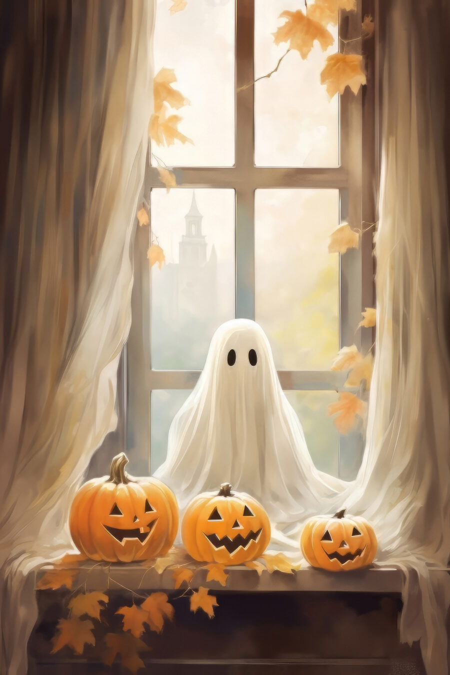 Wyobraź sobie tę przytulną scenkę na ścianie – dynie z rozkosznymi uśmiechami i przyjaznego ducha wiszącego na parapecie. To tak, jakby dzieliły się sekretami na temat jesiennych liści na zewnątrz, a ich ciepły pomarańczowy blask niemal szeptał “Szczęśliwej jesieni” każdemu, kto przechodzi obok. Idealne, gdy potrzebujesz odrobiny kaprysu lub chcesz zaimponować swoim znajomym kochającym Halloween. Poza tym, kto mógłby się oprzeć tak uroczej ekipie? Obiecują, że upiorne wibracje będą lekkie, a serce lżejsze. Tylko odrobina dyniowej magii!