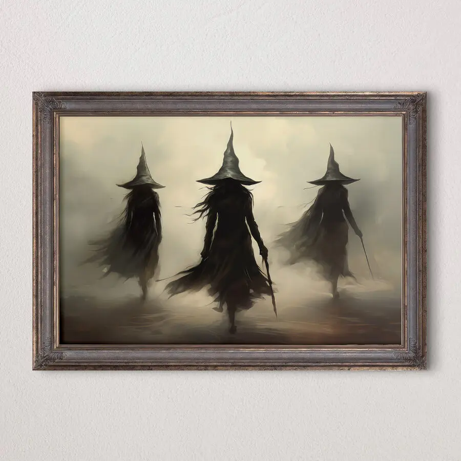 Wyobraź sobie spacer po mglistym krajobrazie marzeń – ten wydruk na płótnie doskonale oddaje ten niesamowity klimat. Trzy tajemnicze postacie w czerni, noszące kapelusze, które wydają się zapożyczone z tajemnic wszechświata, dryfują przez mgłę. To nawiedzające, ale w jakiś sposób pocieszające, jakby miały historie do opowiedzenia. Powieś go i nagle w pokoju zapanuje nastrojowa, filmowa atmosfera. Idealny do rozbudzania ciekawości (i może trochę psot) wśród przyjaciół. To abstrakcyjny zwrot w sztuce, który sprawi, że będziesz zastanawiać się, kim mogą być te enigmatyczne kobiety.