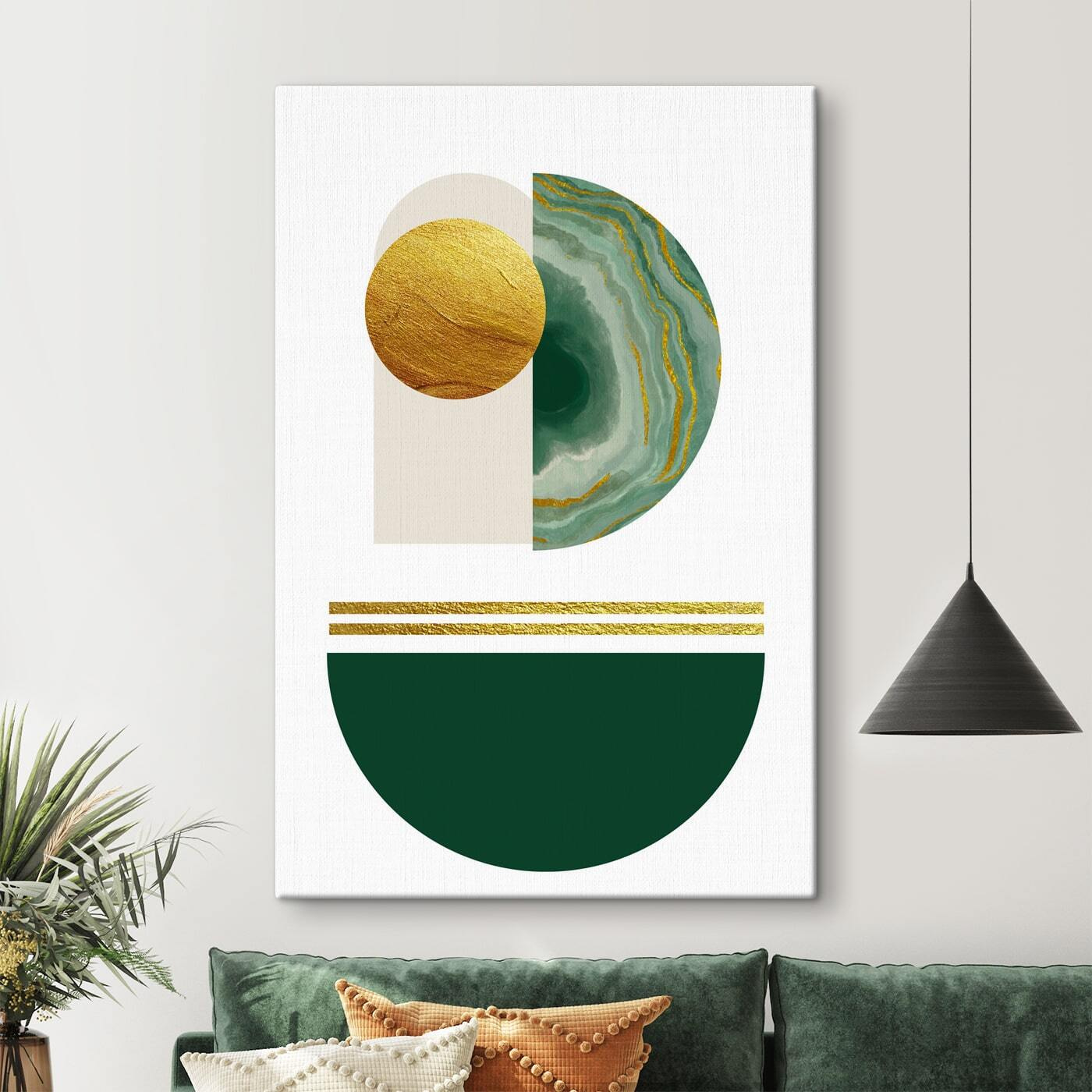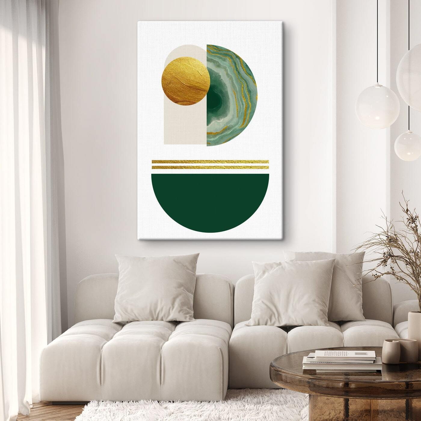 Dodaj odrobinę nowoczesnego uroku do każdej przestrzeni dzięki temu obrazowi na płótnie o geometrycznych kształtach i oszałamiającej fakturze marmuru. Jest jak powiew świeżego powietrza dla ścian, przekształcając je w elegancką narrację. Wyobraź go sobie nad przytulnym kącikiem do czytania lub w minimalistycznym biurze, pobudzając inspirację i rozmowę. Mieszanka ziemistych i bogatych odcieni zapewnia poczucie spokoju, a unikalne kształty sprawiają, że wszystko jest interesujące. To sztuka, która jest przyjazna – jak fajny przyjaciel, który zawsze zna najlepsze kawiarnie. Idealny do wyrażania opinii bez krzyczenia!