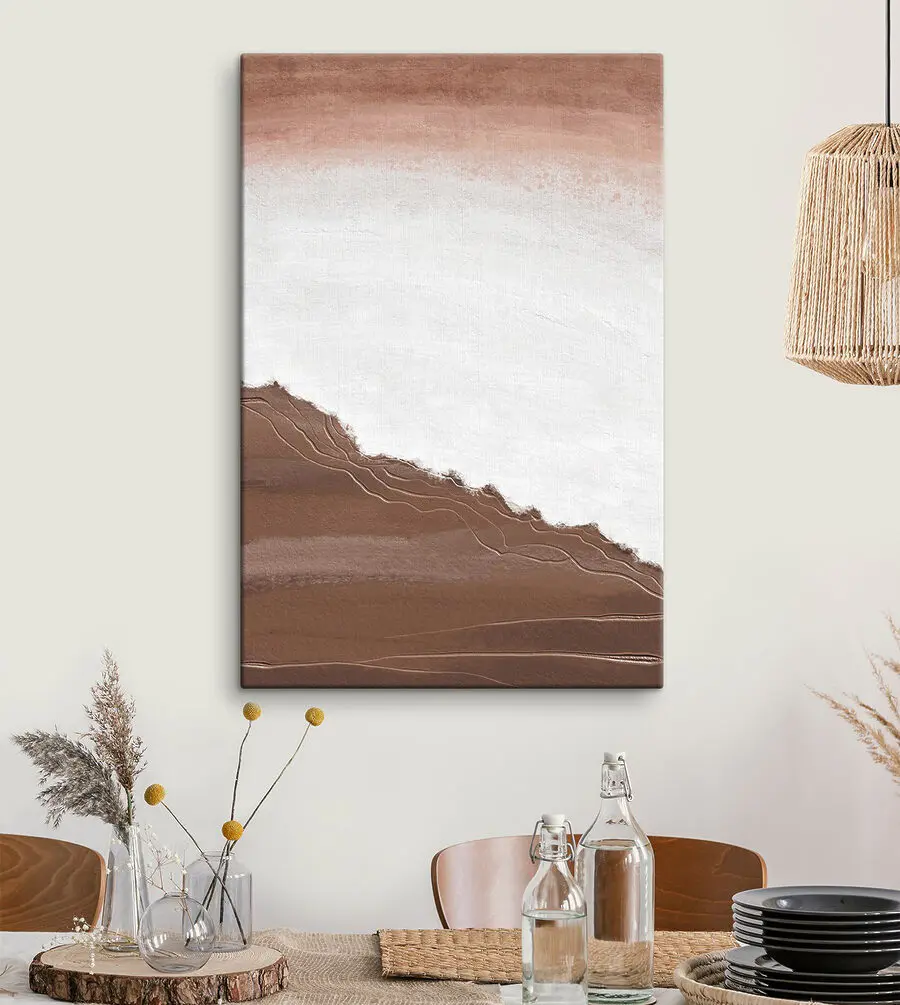 Wyobraź sobie: odpoczywasz w domu, a ten wspaniały wydruk na płótnie przyciąga wzrok – “Biało-brązowa powierzchnia”. To tak, jakby plaża spotkała się z niebem na artystycznej randce! Mieszanka miękkiej bieli i ciepłych brązów jest jak uścisk ziemistości. Idealny dla plażowiczów lub każdego, kto chce dodać odrobinę natury do swojego wnętrza.