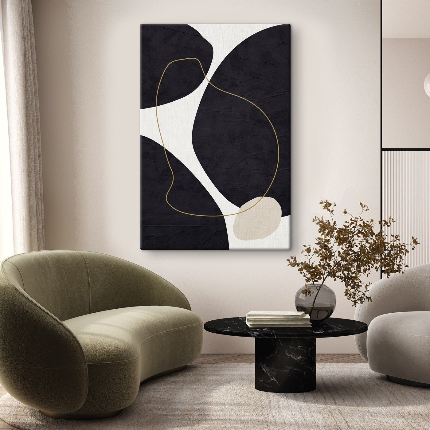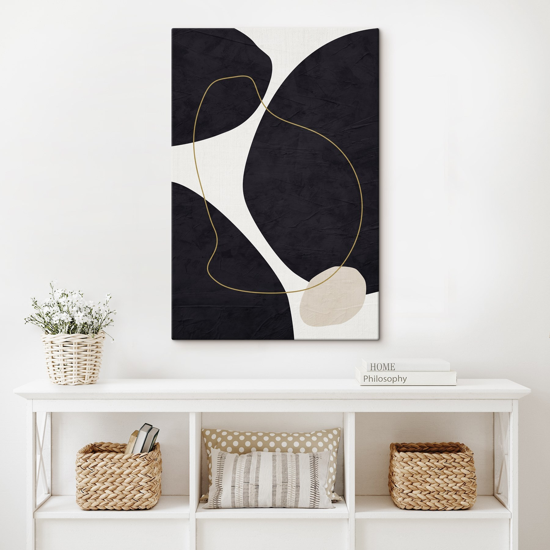 “Obraz Elegant Curves, Monochrome Harmony” jest jak cichy taniec cieni i światła, idealny do każdego pomieszczenia pragnącego odrobiny wyrafinowania. Dzięki czerni, bieli i miękkim krzywiznom szepcze spokojne i klasyczne wibracje, jednocześnie kiwając głową w duchu minimalizmu. Wyobraź sobie, że wisi w twoim salonie – ponadczasowy element, który z pewnością wywoła rozmowy i może trochę zazdrości ze strony gości. Łatwo dopasowuje się do każdego wystroju, dzięki czemu jest świetnym prezentem dla przyjaciela, który zawsze przestawia meble.