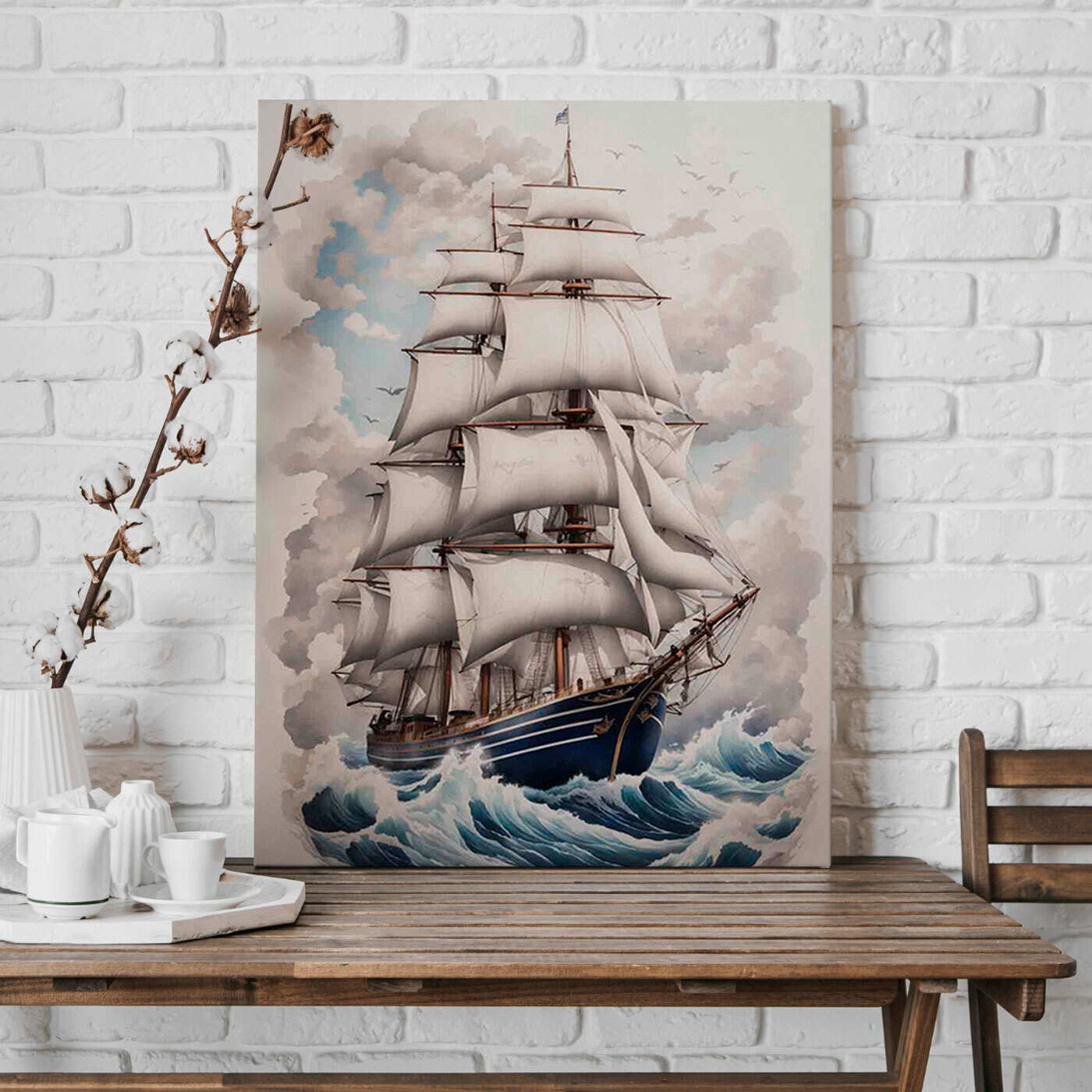 Popłyń na fali kreatywności dzięki temu oszałamiającemu drukowi na płótnie przedstawiającemu statek żeglujący po oceanie. Misterne detale powiewających żagli i figlarny taniec fal tworzą scenę, która wydaje się niemal żywa. Wyobraź sobie, że to dzieło sztuki rozjaśnia salon lub gabinet, wywołując rozmowy o przygodach i dalekich podróżach. Wywołuje poczucie wolności, jakby statek mógł zabrać cię na odległe horyzonty. Idealny dla tych, którzy cenią sobie unikalny wystrój – to dzieło przypomina, że eksploracja zaczyna się w domu.