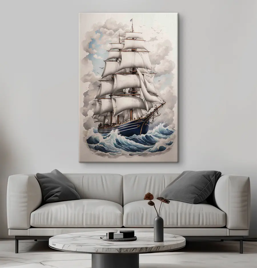 Popłyń na fali kreatywności dzięki temu oszałamiającemu drukowi na płótnie przedstawiającemu statek żeglujący po oceanie. Misterne detale powiewających żagli i figlarny taniec fal tworzą scenę, która wydaje się niemal żywa. Wyobraź sobie, że to dzieło sztuki rozjaśnia salon lub gabinet, wywołując rozmowy o przygodach i dalekich podróżach. Wywołuje poczucie wolności, jakby statek mógł zabrać cię na odległe horyzonty. Idealny dla tych, którzy cenią sobie unikalny wystrój – to dzieło przypomina, że eksploracja zaczyna się w domu.