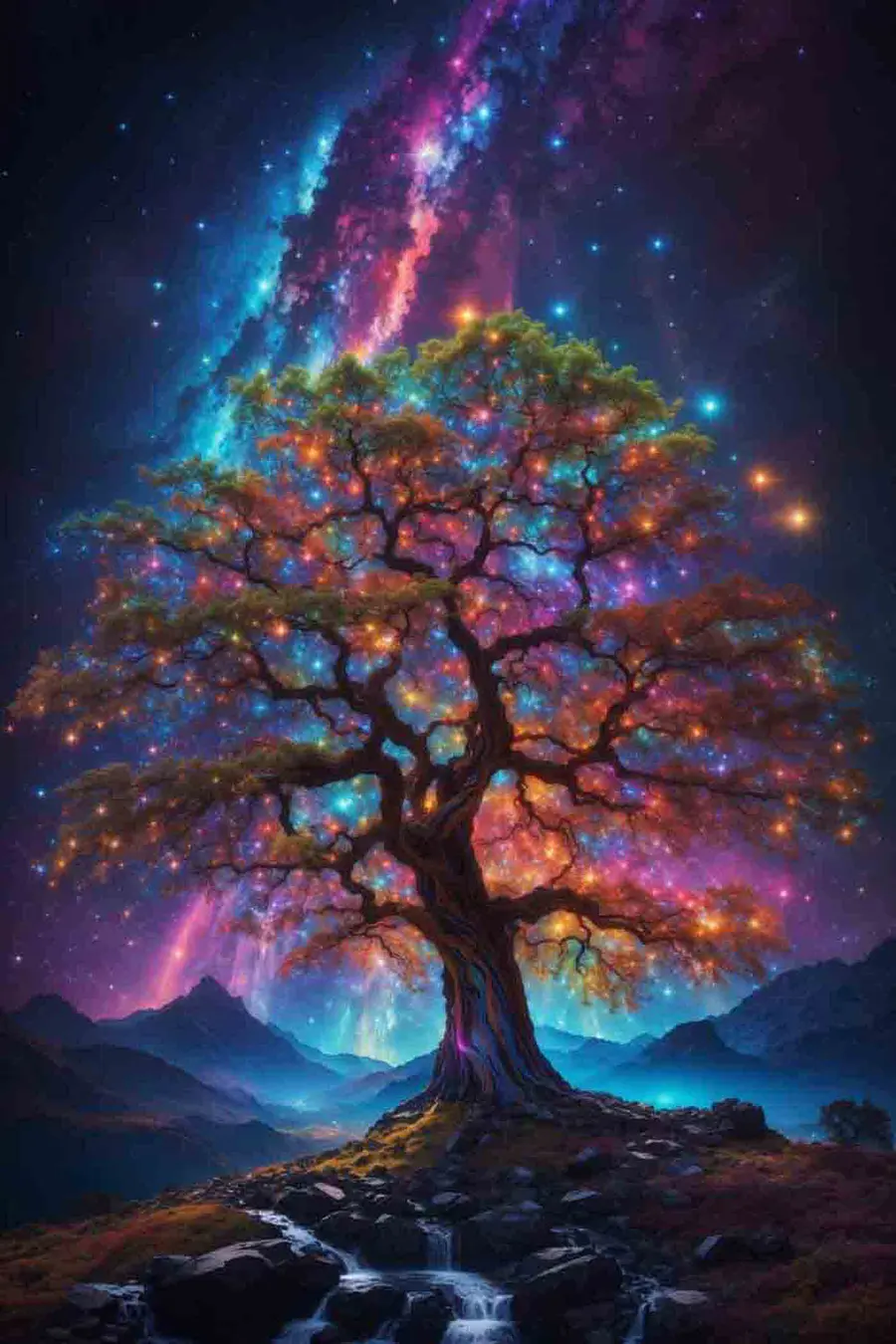 Wnieś odrobinę cudu do każdego pomieszczenia dzięki obrazowi na płótnie Drzewo z kolorowymi światełkami. Ten czarujący obraz przekształca wiekowe drzewo w magiczny spektakl, pełen żywych odcieni, które tańczą jak świetliki na tle nocnego nieba. Wyobraź sobie rozmowy, które wywoła – przyjazne debaty na temat tego, czy należy do bajki, czy snu. Idealna nad przytulną kanapą lub w kąciku do czytania, ta sztuka zachęca do zatrzymania się i refleksji. To tak, jakby natura wybrała się na festiwal i przywiozła pocztówkę tylko dla twoich ścian. Kto by się na to nie uśmiechnął?