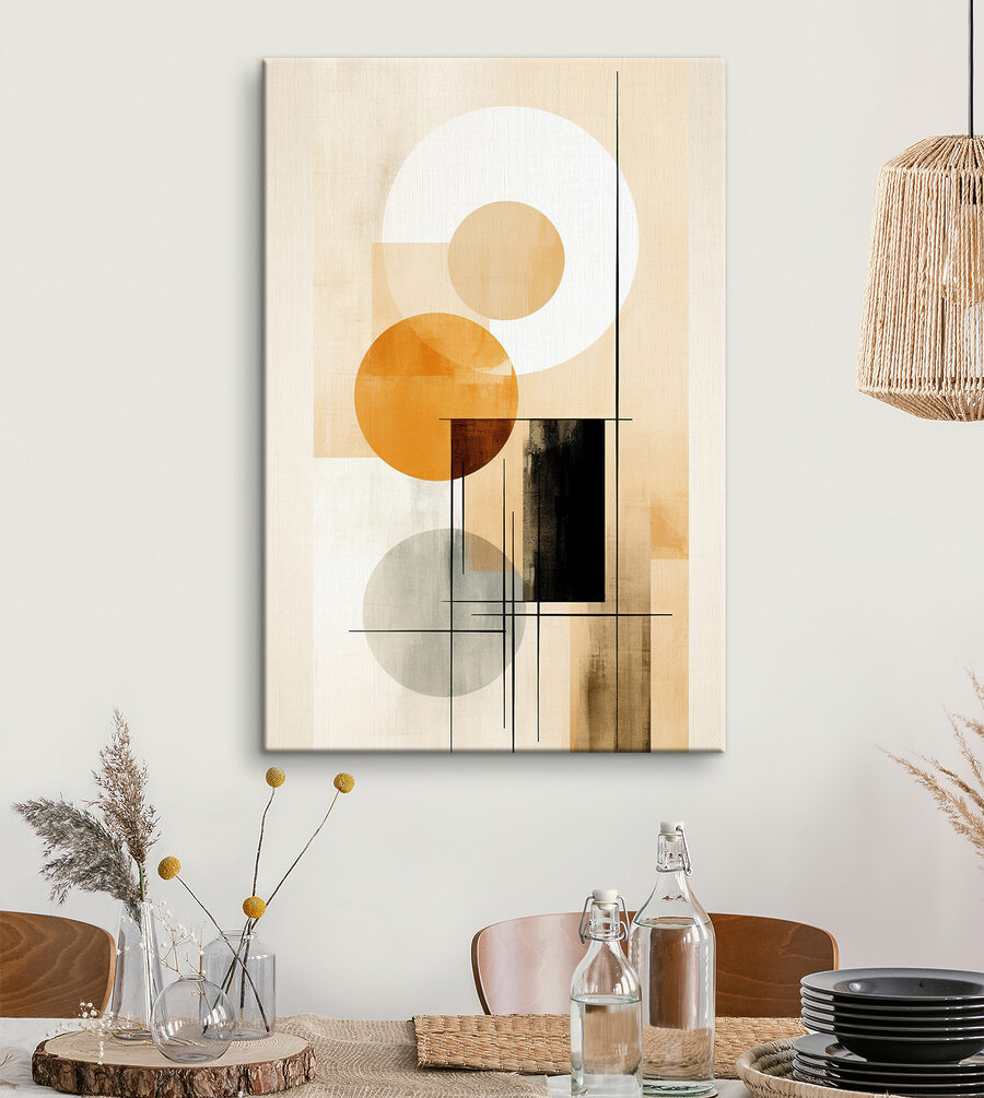 Odkryj świeży klimat dzięki temu obrazowi na płótnie “Geometryczne kształty w abstrakcyjnej harmonii”! Ma tę fajną mieszankę kół i linii, która po prostu wydaje się tak zen i zrównoważona. Idealny dla tych, którzy lubią minimalistyczny design lub po prostu chcą dodać trochę artystycznego stylu do swojej przestrzeni bez popadania w przesadę. Umieszczenie go w salonie jest jak naciśnięcie przycisku odświeżenia wystroju. Wyobraź sobie, że zwijasz się w kłębek z książką, spoglądając na te kształty, które wydają się subtelnie tańczyć – jednocześnie pocieszające i szykowne. To piękno wisi w kategoriach Minimalistyczne i Popularne obrazy na płótnie, więc wiesz, że to zwycięzca.
