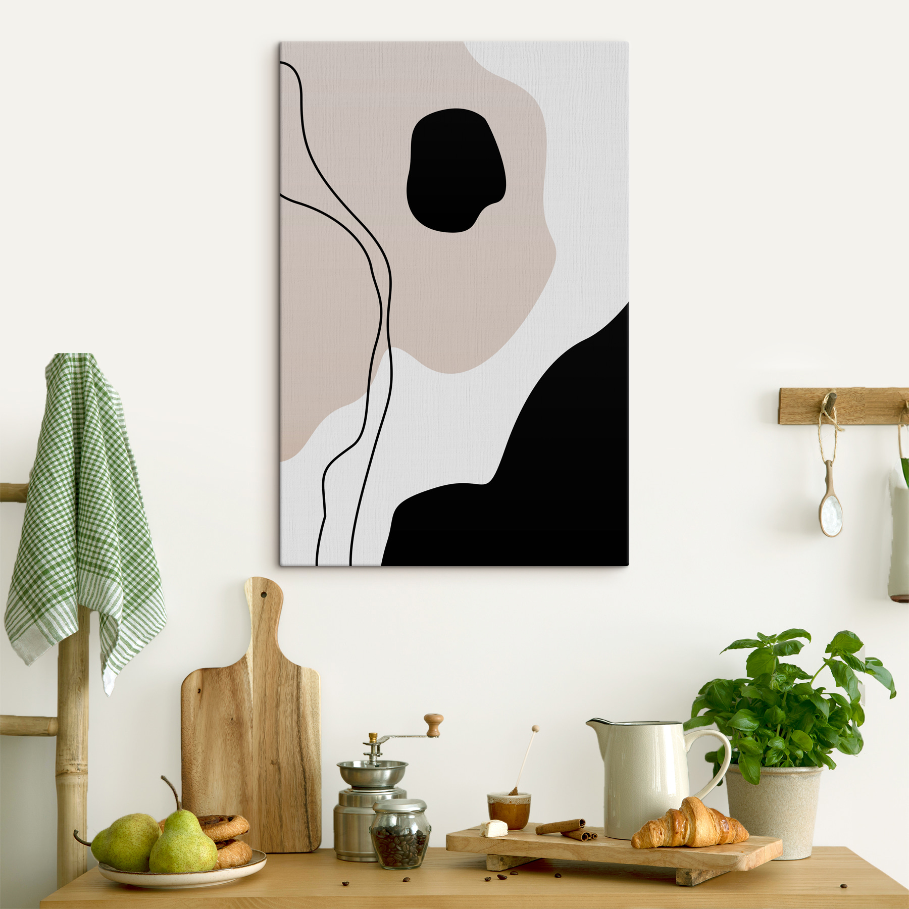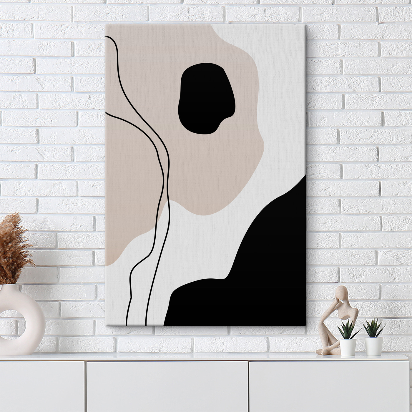 Wnieś odrobinę artystycznego stylu do swojej przestrzeni dzięki temu urzekającemu czarno-białemu wydrukowi na płótnie. Jest minimalistyczny, ale nie w nudny sposób – bardziej jak ten bez wysiłku fajny przyjaciel, który zna właściwe miejsce do spędzania czasu. Wyobraź go sobie nad elegancką sofą lub w przytulnym kąciku do czytania, czekając na rozpoczęcie rozmowy. Zabawne linie i delikatne kształty tworzą atmosferę, która jest zarówno kojąca, jak i stymulująca, jak ciepła filiżanka kawy w deszczowy dzień. To coś więcej niż tylko wydruk; to zaproszenie do oddychania, zastanowienia się lub po prostu podziwiania. Idealny dla tych, którzy cenią sobie odrobinę głębi bez zbytniego zamieszania.