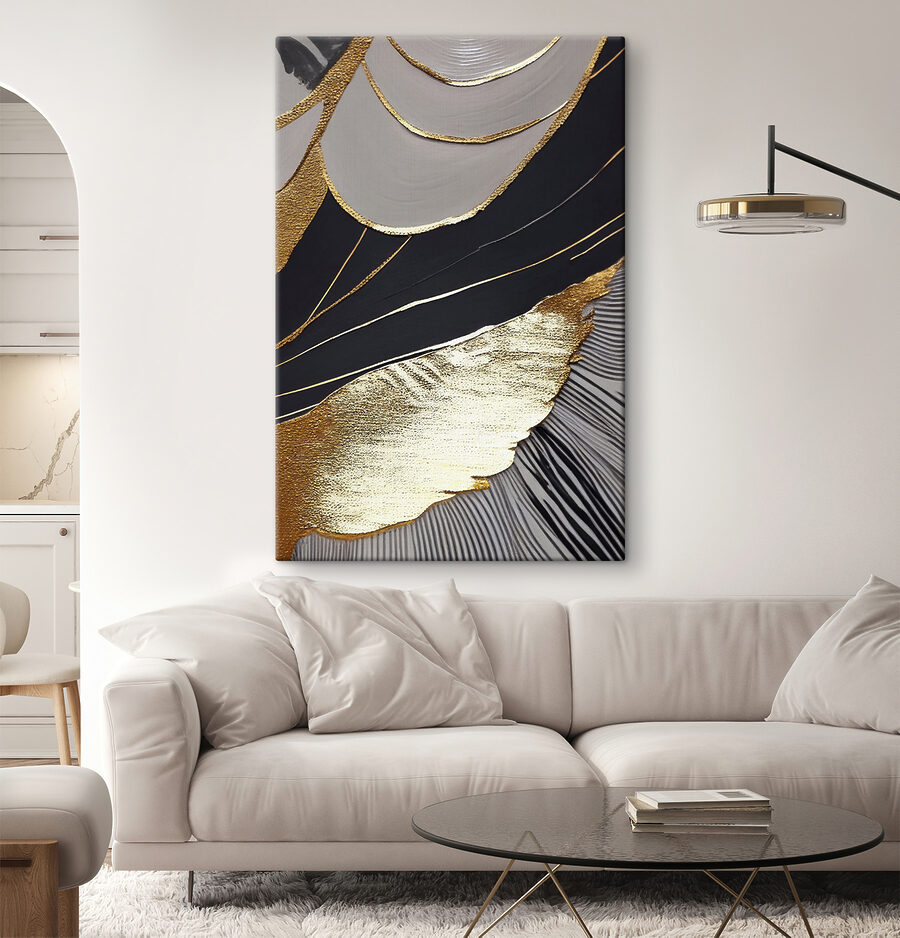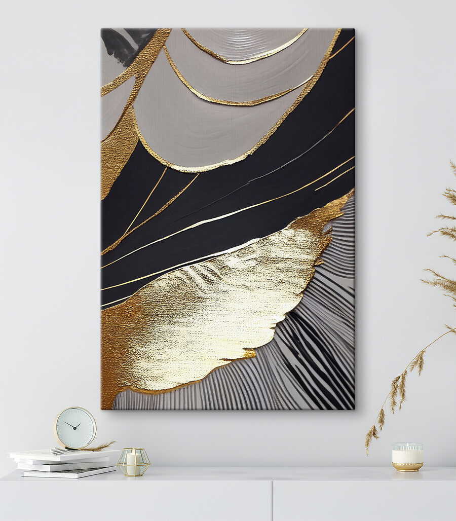 Odmień swoją przestrzeń dzięki temu urzekającemu wydrukowi na płótnie z abstrakcyjnymi czarnymi i metalicznymi wzorami. To jak przeniesienie dzieła sztuki nowoczesnej do salonu – nie wymaga pretensjonalnych wizyt w galerii. Wyobraź sobie, że ta uderzająca grafika zakotwiczy w Twoim ulubionym pokoju, wywołując intrygujące rozmowy podczas swobodnych spotkań. Odważny design przyciąga wzrok, płynnie łącząc się z różnymi stylami wystroju – zarówno przytulnymi, jak i eleganckimi. Wyobraź sobie spokojny wieczór, tylko ty i hipnotyzujące wzory, zatracając się w myślach. To sztuka, która czuje, że żyje, sprawiając, że każde spojrzenie staje się chwilą rozkoszy.