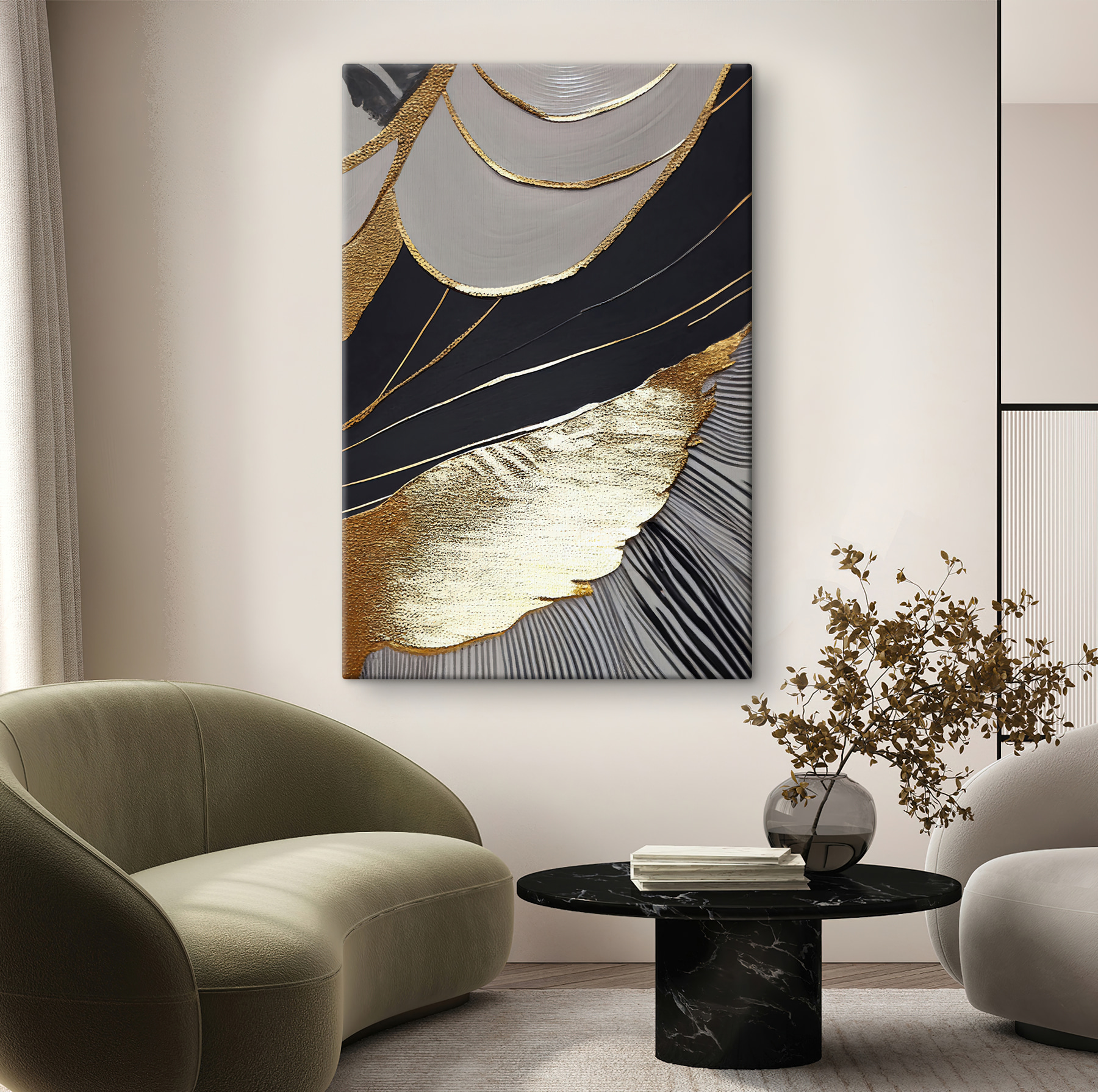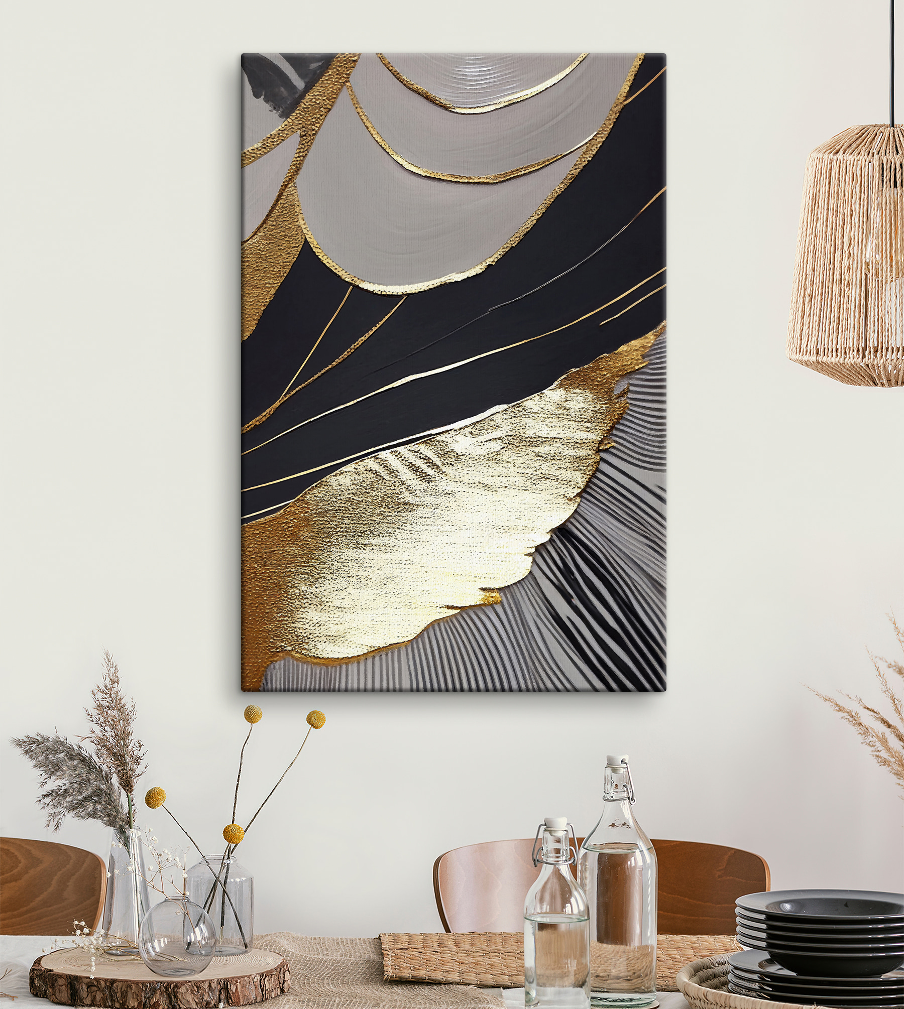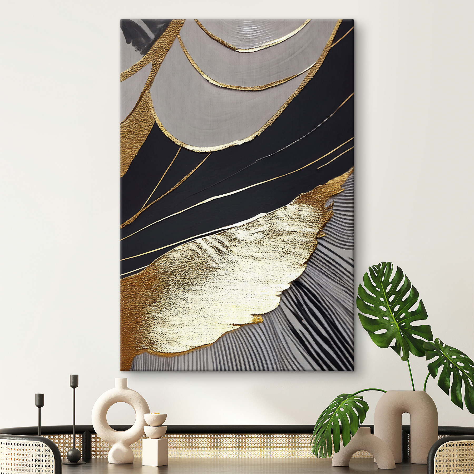 Odmień swoją przestrzeń dzięki temu urzekającemu wydrukowi na płótnie z abstrakcyjnymi czarnymi i metalicznymi wzorami. To jak przeniesienie dzieła sztuki nowoczesnej do salonu – nie wymaga pretensjonalnych wizyt w galerii. Wyobraź sobie, że ta uderzająca grafika zakotwiczy w Twoim ulubionym pokoju, wywołując intrygujące rozmowy podczas swobodnych spotkań. Odważny design przyciąga wzrok, płynnie łącząc się z różnymi stylami wystroju – zarówno przytulnymi, jak i eleganckimi. Wyobraź sobie spokojny wieczór, tylko ty i hipnotyzujące wzory, zatracając się w myślach. To sztuka, która czuje, że żyje, sprawiając, że każde spojrzenie staje się chwilą rozkoszy.