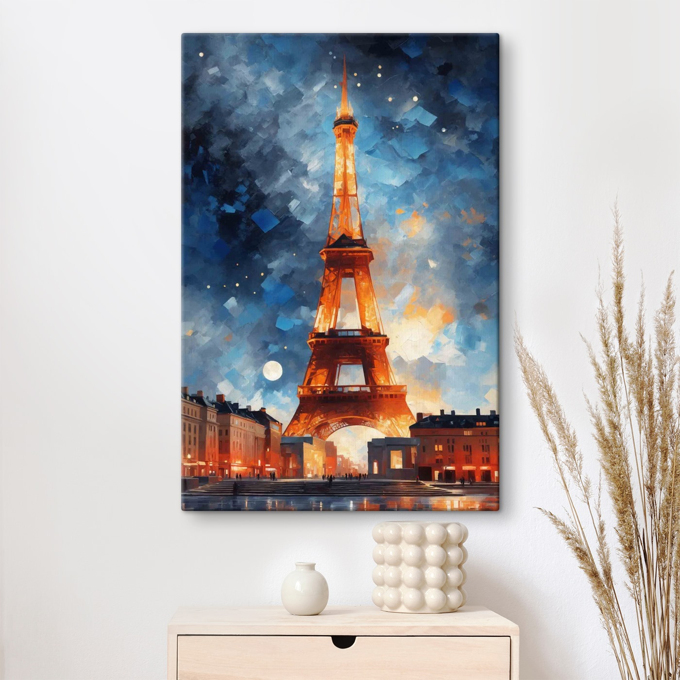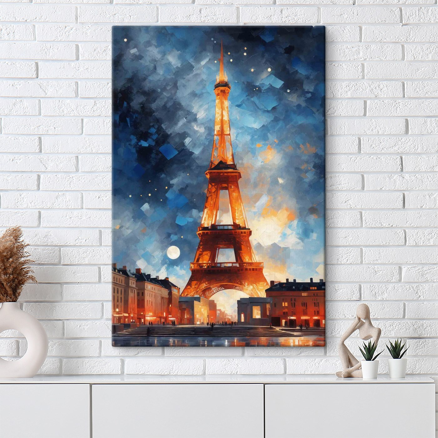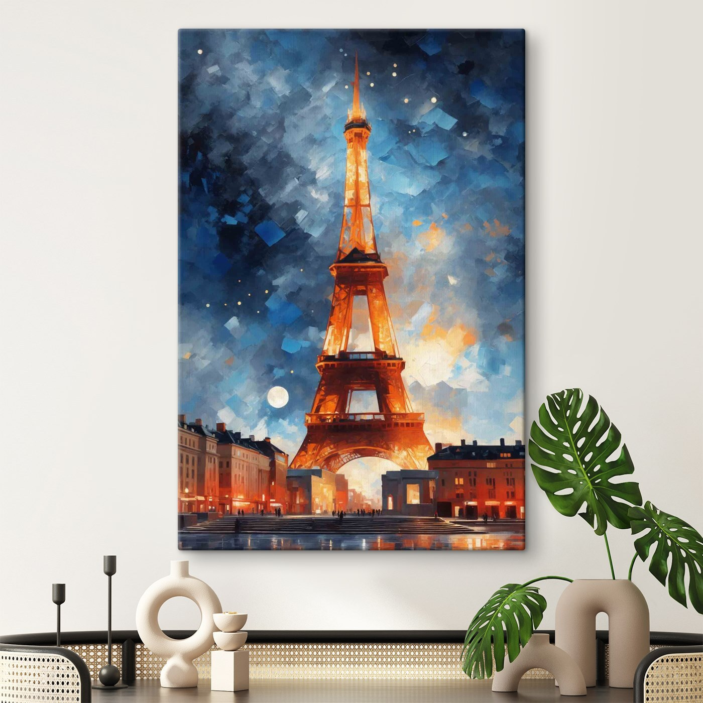 Wyobraź sobie, że siedzisz w domu, popijając wieczorną herbatę, a tuż przed Tobą znajduje się wspaniały wydruk na płótnie przedstawiający wieżę oświetloną na tle nocnego nieba. To tak, jakby ktoś uchwycił moment, w którym wieża zdecydowała się założyć swój fantazyjny, migoczący wieczorowy strój. Głębokie błękity i ciepłe światła wnoszą odrobinę magii do każdej przestrzeni. Pomyśl o niej jak o oknie do innego świata, w którym powietrze jest rześkie i pełne możliwości. Idealny do tego miejsca w salonie, które aż prosi się o odrobinę “wow”. Za każdym razem, gdy na nią spojrzysz, zatracisz się w jej uroku, być może marząc o odległych krainach.