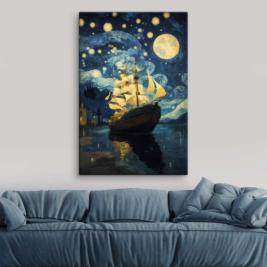 Wyobraź sobie ten wydruk na płótnie – hipnotyzujący statek płynący pod rozgwieżdżonym niebem, wprost w Twoim salonie. To jak migawka przygody, która obiecuje Cię porwać, nawet jeśli właśnie wylegujesz się z filiżanką herbaty. Sposób, w jaki światło księżyca tańczy na wodzie, to czysta magia; wydaje się, że może towarzyszyć temu chłodna, oceaniczna bryza. Idealny do rozbudzania marzeń lub dodawania szczypty wędrówki do dnia. Ponadto jest to świetny początek rozmowy – ktoś z pewnością zapyta, dokąd może popłynąć w następnej kolejności. Absolutnie czarujący!