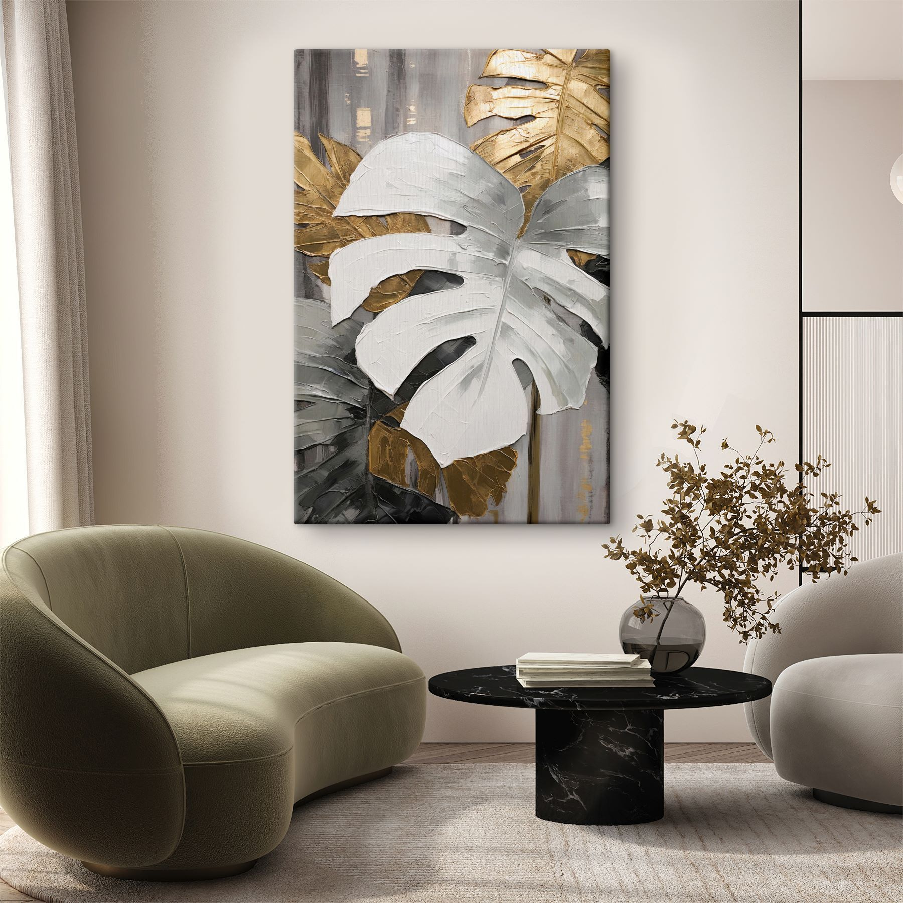 Przekształcanie przestrzeni polega na szczegółach, a ten element właśnie to robi. Dzięki połączeniu eleganckiego monochromu i nieoczekiwanych tekstur liści, bez wysiłku wypełnia lukę między naturą a nowoczesnym designem. Umieszczony nad przytulną kanapą lub w jasnym korytarzu, natychmiast tchnie życie i styl w pomieszczenie. Gra kolorów i kształtów może pobudzić do rozmowy, przynosząc odrobinę radości każdemu, kto przechodzi obok. Ponadto, jest to jak codzienne przypomnienie, aby przyjąć zarówno elegancję, jak i wyluzowaną atmosferę. Dodaj odrobinę świeżości na swoją ścianę i pozwól jej mówić – bo kto nie kocha odrobiny sztuki, która czuje się po prostu dobrze?