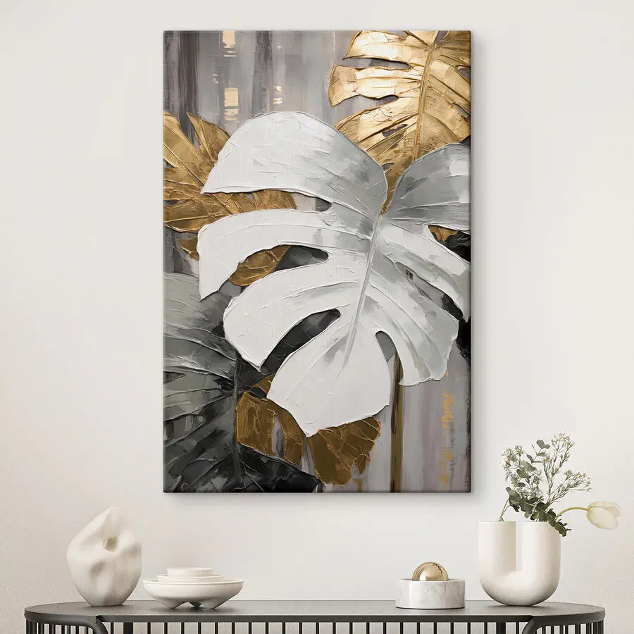 Przekształcanie przestrzeni polega na szczegółach, a ten element właśnie to robi. Dzięki połączeniu eleganckiego monochromu i nieoczekiwanych tekstur liści, bez wysiłku wypełnia lukę między naturą a nowoczesnym designem. Umieszczony nad przytulną kanapą lub w jasnym korytarzu, natychmiast tchnie życie i styl w pomieszczenie. Gra kolorów i kształtów może pobudzić do rozmowy, przynosząc odrobinę radości każdemu, kto przechodzi obok. Ponadto, jest to jak codzienne przypomnienie, aby przyjąć zarówno elegancję, jak i wyluzowaną atmosferę. Dodaj odrobinę świeżości na swoją ścianę i pozwól jej mówić – bo kto nie kocha odrobiny sztuki, która czuje się po prostu dobrze?