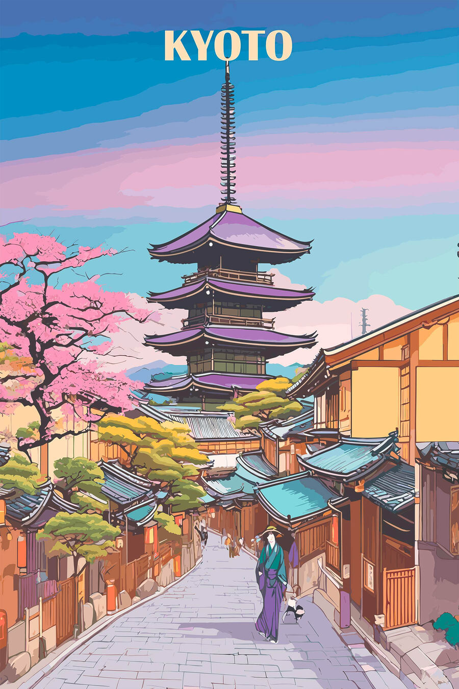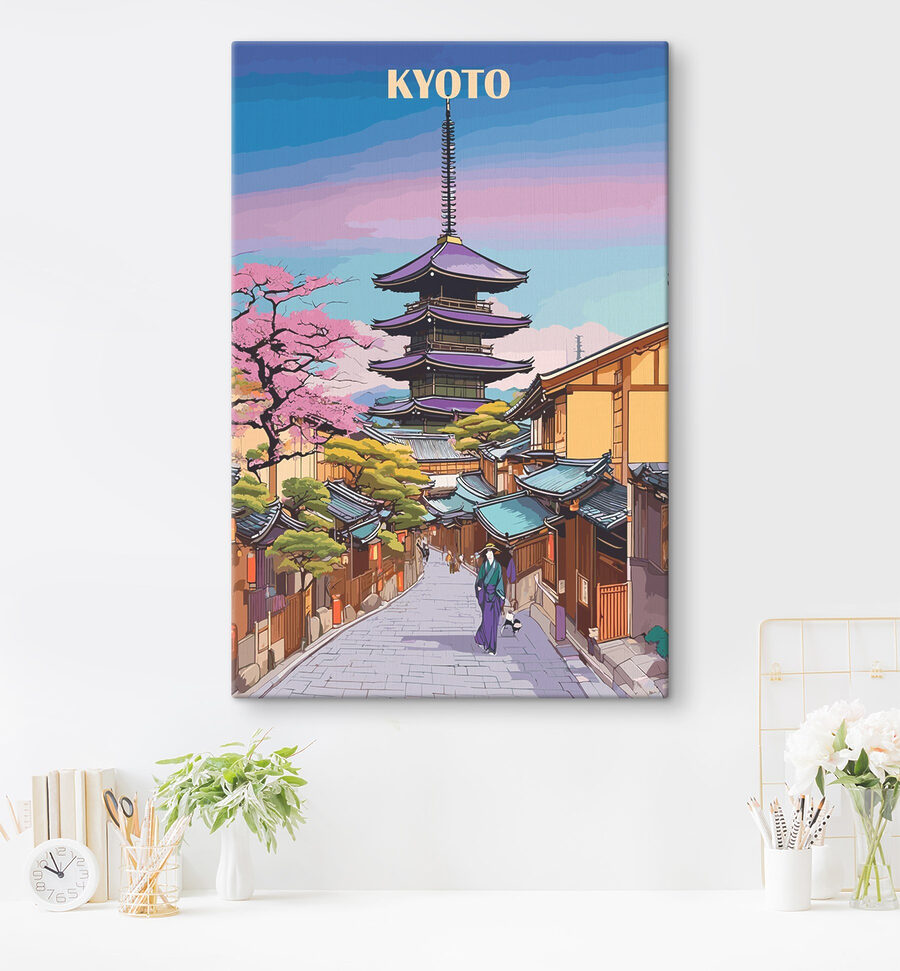Wyobraź sobie spacer urokliwą ulicą Kioto, kwiaty wiśni kołyszące się delikatnie, kultową pagodę stojącą dumnie na tle pastelowego nieba. Ten wydruk na płótnie oddaje więcej niż architekturę – śpiewa pięknem cichej przygody. Idealny dla Twojej przestrzeni, jeśli pragniesz odrobiny wędrówki bez opuszczania kanapy. To jak okno na spokojny, poetycki świat. Być może zainspiruje to kilka chwil zen w ciągu dnia. Zawieś go i pozwól, aby Twój pokój ogarnęła odrobina tej spokojnej, ponadczasowej magii.