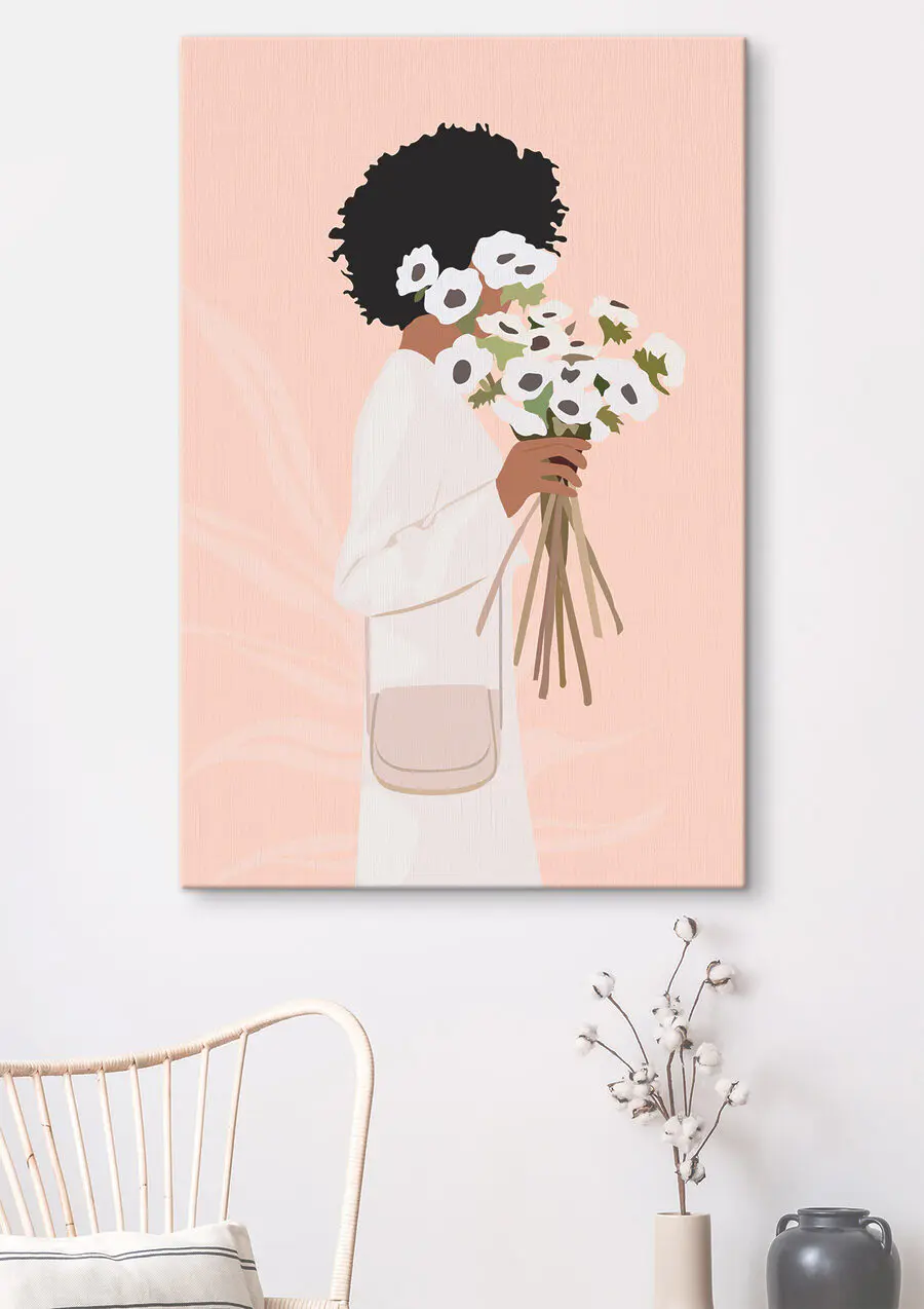 Sprawdź ten marzycielski wydruk na płótnie “Woman Holding Flowers” – jest jak delikatny szept elegancji i spokoju. Wyobraź sobie, że to piękno zdobi twoją ścianę, wywołując małe marzenia za każdym razem, gdy przechodzisz obok. Delikatne kolory i mieszanka kwiatowego uroku zmieszanego z odrobiną tajemniczości wprowadzają świeży, przewiewny klimat do każdego pomieszczenia. Jest to element, który zachęca do zatrzymania się, oddechu, a może nawet uśmiechu, jak niespodziewane spotkanie ze starym przyjacielem. Idealny dla tych, którzy kochają odrobinę sztuki w codziennym życiu.
