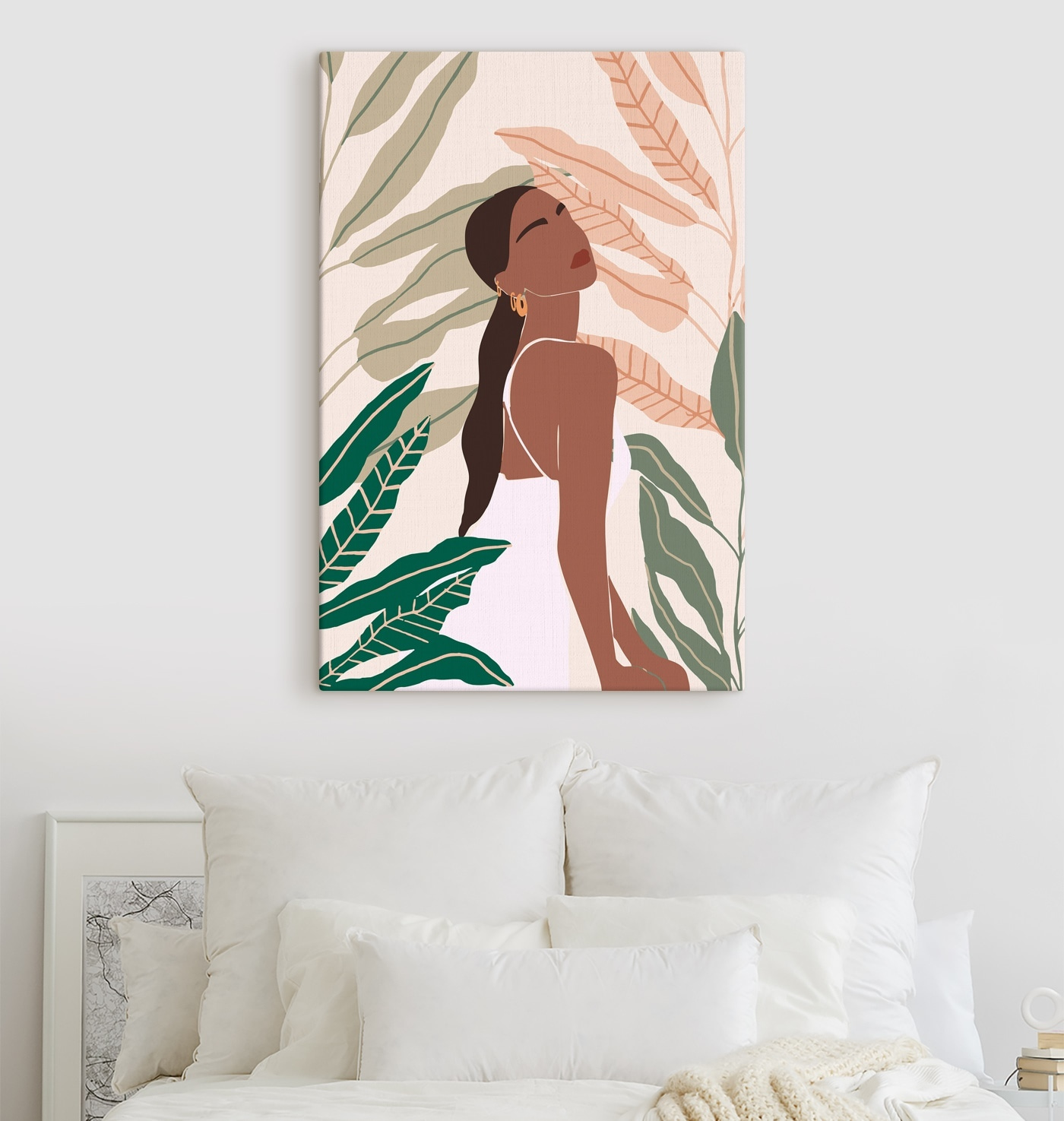 “Serenity in Tropical Elegance” jest jak delikatne westchnienie dla Twoich ścian. Wyobraź sobie, że odprężasz się po długim dniu i witasz się z tym uspokajającym dziełem – pełnym ciepłych tonów i tropikalnych wibracji. Jest zarówno stylowy, jak i kojący, trochę jak mini wakacje w salonie. Idealny dla miłośników natury lub każdego, kto ceni sobie odrobinę artystycznego spokoju. Niezależnie od tego, czy jest to początek rozmowy, czy spokojne tło, ma odrobinę magii ukrytą w każdym liściastym szczególe. Trochę charyzmy wystarczy, prawda?