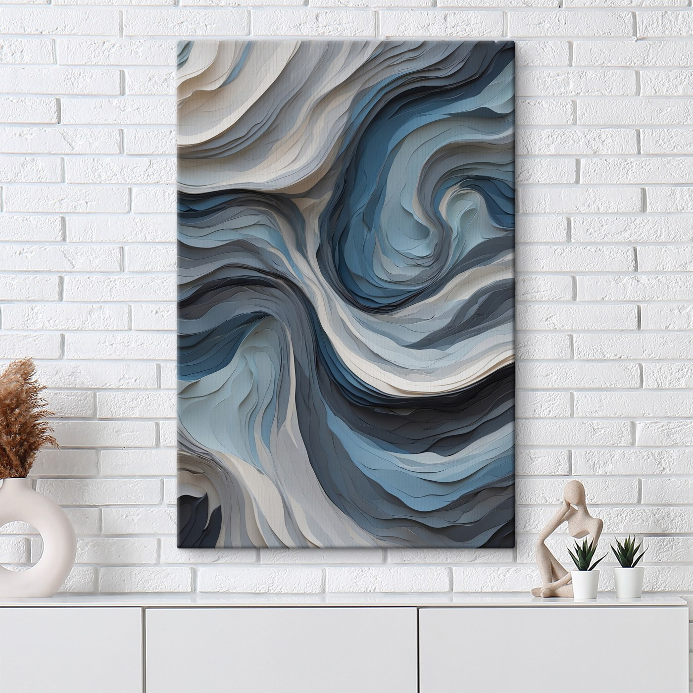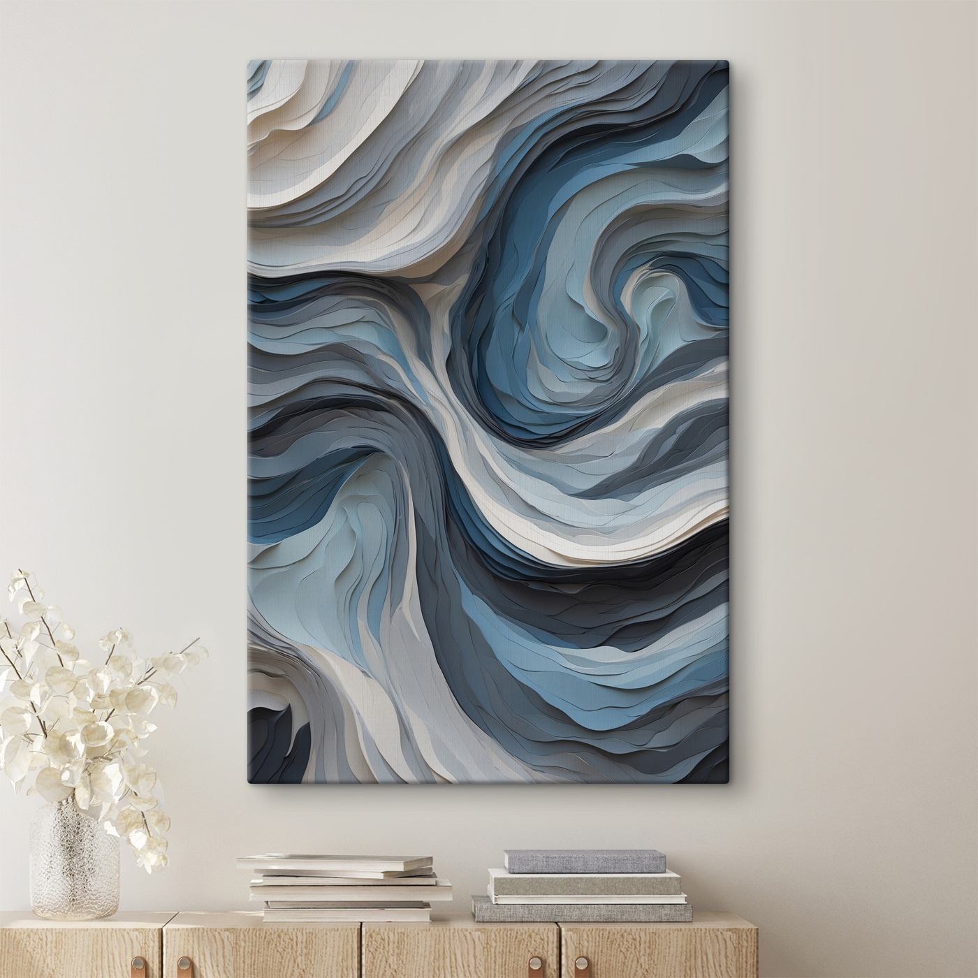 Wiesz, kiedy potrzebujesz odrobiny spokoju w swojej przestrzeni? “Oceanic Waves of Tranquil Layers” może być Twoją odpowiedzią. Ten wydruk na płótnie przenosi łagodny uścisk morza wprost do Twojego pokoju. Wyobraź sobie, że popijasz poranną kawę, gubiąc się w kojących błękitach i zawirowaniach. To jak mini-wakacje bez opuszczania kanapy. Idealny dla tych, którzy kochają naturę i odrobinę spokoju (bez piasku!). Idealny do salonu, sypialni lub tej niewygodnej ściany, którą ignorujesz. Zanurz się i daj się ponieść falom.