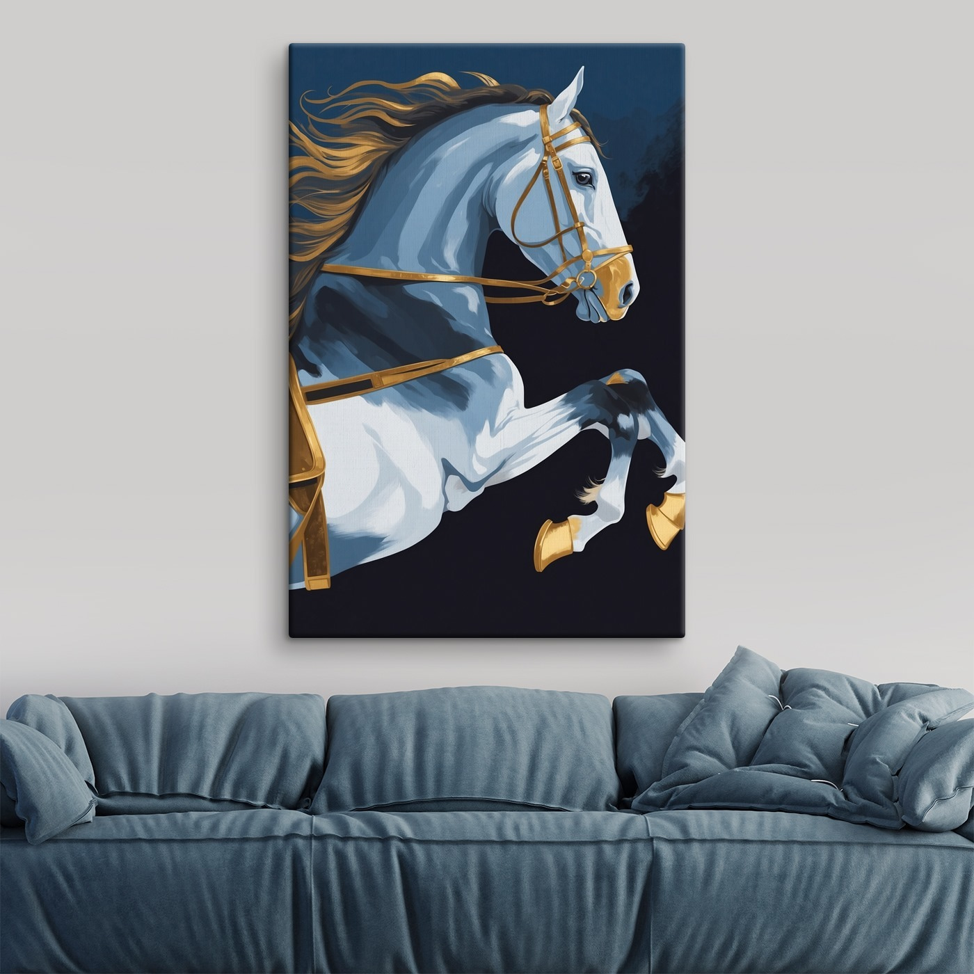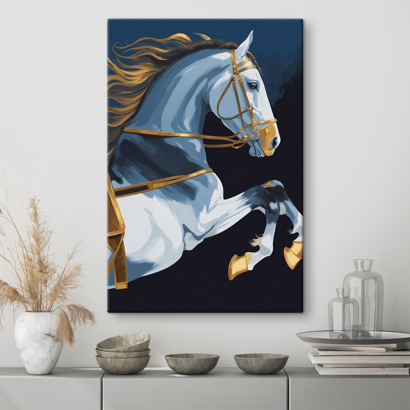 Ten oszałamiający wydruk na płótnie przedstawiający majestatycznego konia jest idealnym akcentem dla każdego pomieszczenia, które potrzebuje odrobiny dzikiego ducha. Wyobraź sobie, że to piękno zdobi Twoją ścianę – to tak, jakbyś miał kawałek bajki w swoim salonie. Pociągnięcia pędzla wydają się niemal galopować po płótnie, prawda? To coś więcej niż tylko sztuka; to doświadczenie. Codzienne przypomnienie, by poczuć bryzę we włosach i marzyć o wielkich rzeczach. Niezależnie od tego, czy jesteś miłośnikiem koni, czy po prostu doceniasz sztukę z nutką elegancji, ten kawałek z pewnością wzbudzi dobre wibracje. Idealny do rozpoczęcia rozmowy lub po prostu zatracenia się w pełnej wdzięku mocy, którą przedstawia. Zrób miejsce dla tego urzekającego obrazu!