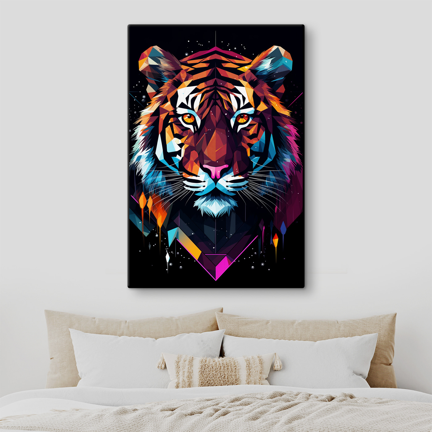 Powieś go w salonie, sypialni, a nawet w biurze i pozwól, by odcienie pomarańczowego, niebieskiego i różowego tchnęły życie w każdą ścianę. Pomyśl o nim jak o swoim osobistym tygrysie stróżu z odrobiną neonowych świateł. Każde spojrzenie na nią przyniesie odrobinę radości i lekki dreszcz w dół kręgosłupa… oczywiście w dobry sposób. To coś więcej niż tylko sztuka – to początek rozmowy, natychmiastowy poprawiacz nastroju i idealny element dla każdego, kto ma trochę dzikie serce. Więc śmiało, dodaj odrobinę nieokiełznanego piękna do swojego domu!