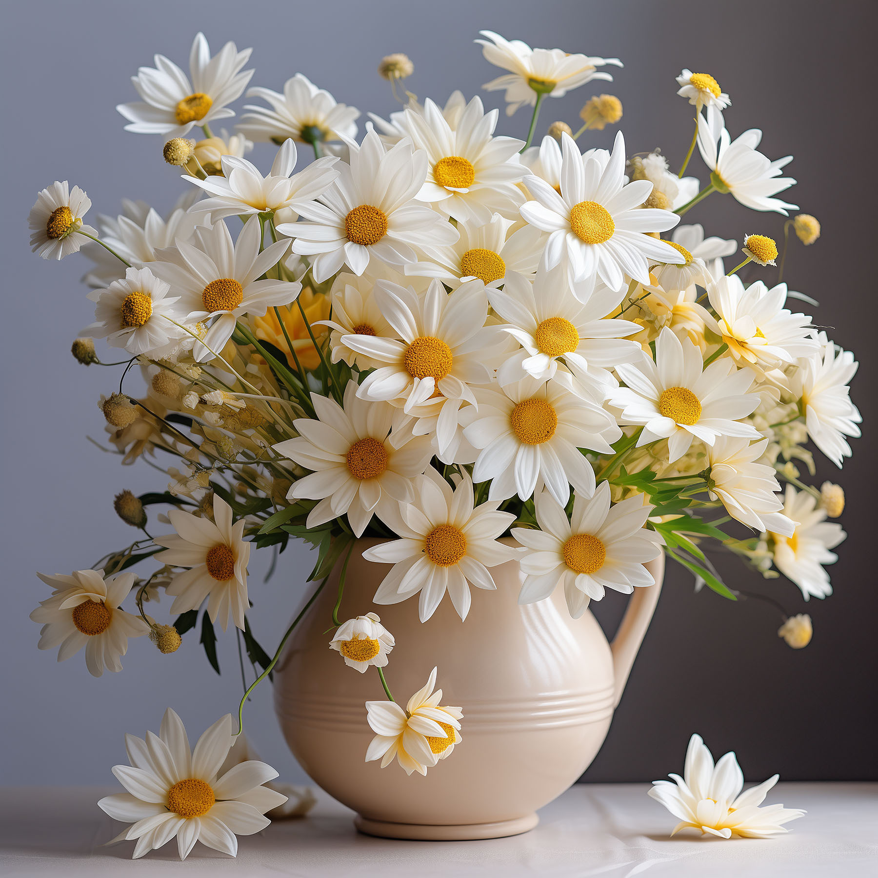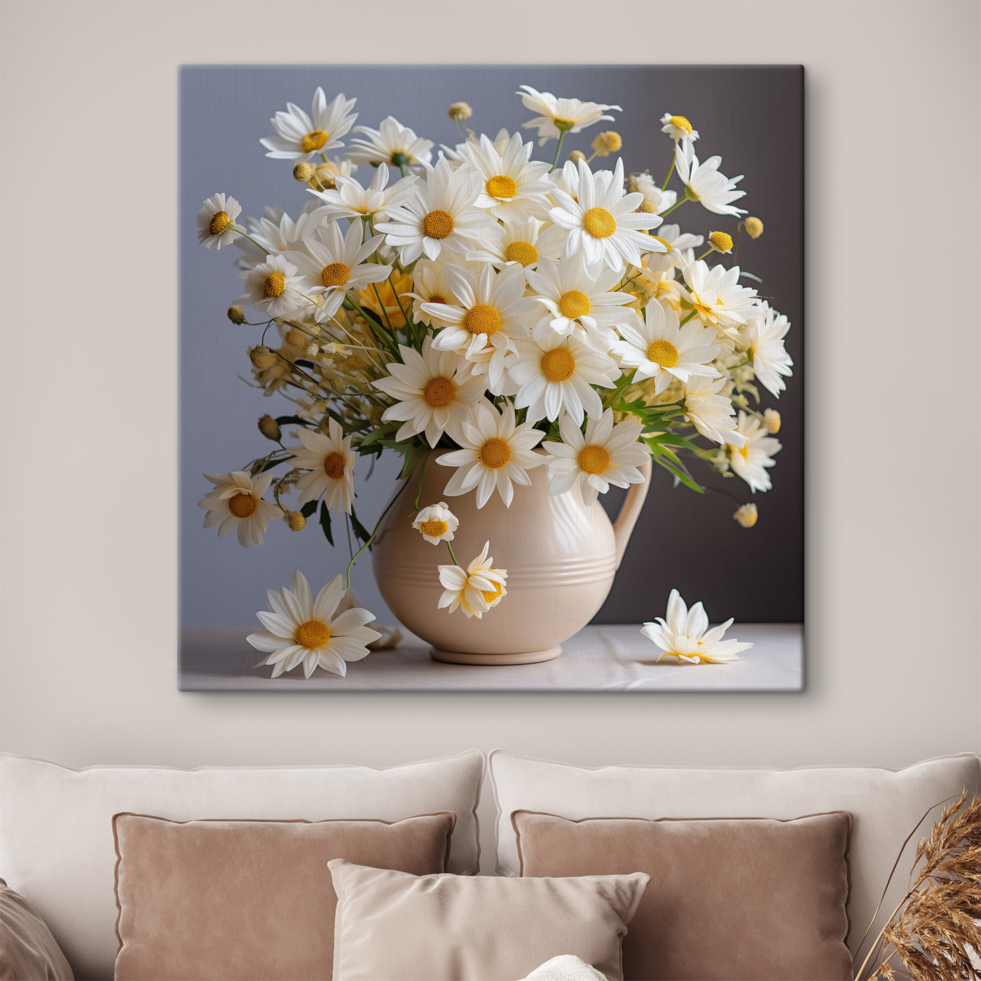 Rozjaśnij swoją przestrzeń dzięki temu wspaniałemu drukowi na płótnie przedstawiającemu kwitnące stokrotki w uroczym ceramicznym wazonie. To jak wybuch słońca, prosto na twoją ścianę! Wyobraź sobie, że wchodzisz do pokoju i od razu czujesz radosną atmosferę, jakbyś właśnie spacerował po rozświetlonym słońcem ogrodzie. Zabawny taniec płatków i żywe kolory zachęcają do uśmiechu i ciepła, dzięki czemu idealnie nadają się do każdego zakątka potrzebującego odrobiny życia. To nie tylko dekoracja; to początek rozmowy, mały kawałek natury, który nigdy nie więdnie. Kto nie chciałby poczuć odrobiny tej codziennej radości? Odmień swoje ściany i pozwól stokrotkom zdziałać swoją magię!