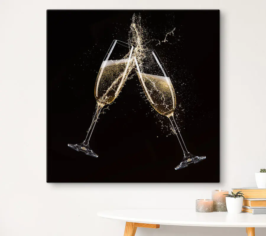 Podnieś kieliszek do stylu dzięki temu żywemu drukowi na płótnie przedstawiającemu kieliszki do szampana w połowie toastu, doskonale uchwycając ten uroczysty moment rozpryskiwania. Wydaje się, że za każdym razem, gdy przechodzisz obok, słyszysz śmiech odbijający się echem od dawno minionej imprezy, a może nawet czujesz musowanie w powietrzu. Umieszczenie tego elementu w kuchni lub salonie dodaje zabawnego akcentu, który pobudza rozmowę – kto nie kocha dobrej historii o toastach? Żywe obrazy wypełniają pomieszczenie energią, sprawiając, że każdy dzień wydaje się nieco bardziej wyjątkowy, nawet jeśli po prostu cieszysz się przytulnym wieczorem. Wiwat sztuka, która tańczy!