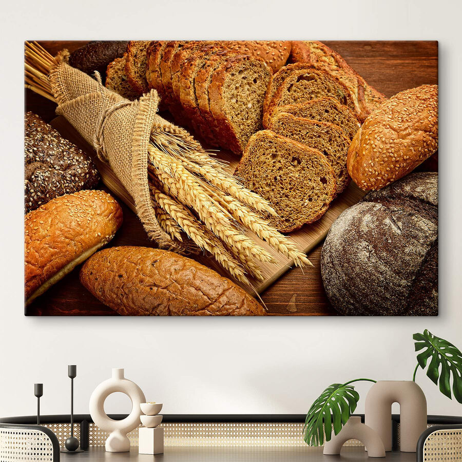 Wnieś ciepły, rustykalny klimat do swojej przestrzeni dzięki temu drukowi na płótnie z różnymi rodzajami chleba i pięknymi łodygami pszenicy. To jak przytulna piekarnia pełna uroku, czekająca, aby rozjaśnić pustą ścianę. Wyobraź sobie, że przechodzisz obok i czujesz powiew świeżo upieczonych smakołyków, nawet jeśli to tylko obraz. Idealny do kuchni lub jadalni, zachęca do rozmów przy wspólnych posiłkach i miłych wspomnień. Poza tym, kto nie kocha chleba? To uniwersalna wygoda. Dodaj ten element do swojego wystroju i pozwól mu stać się zapraszającym sercem Twojego domu.