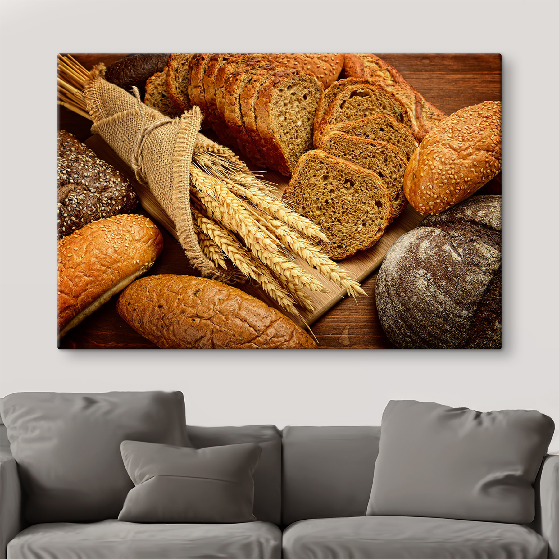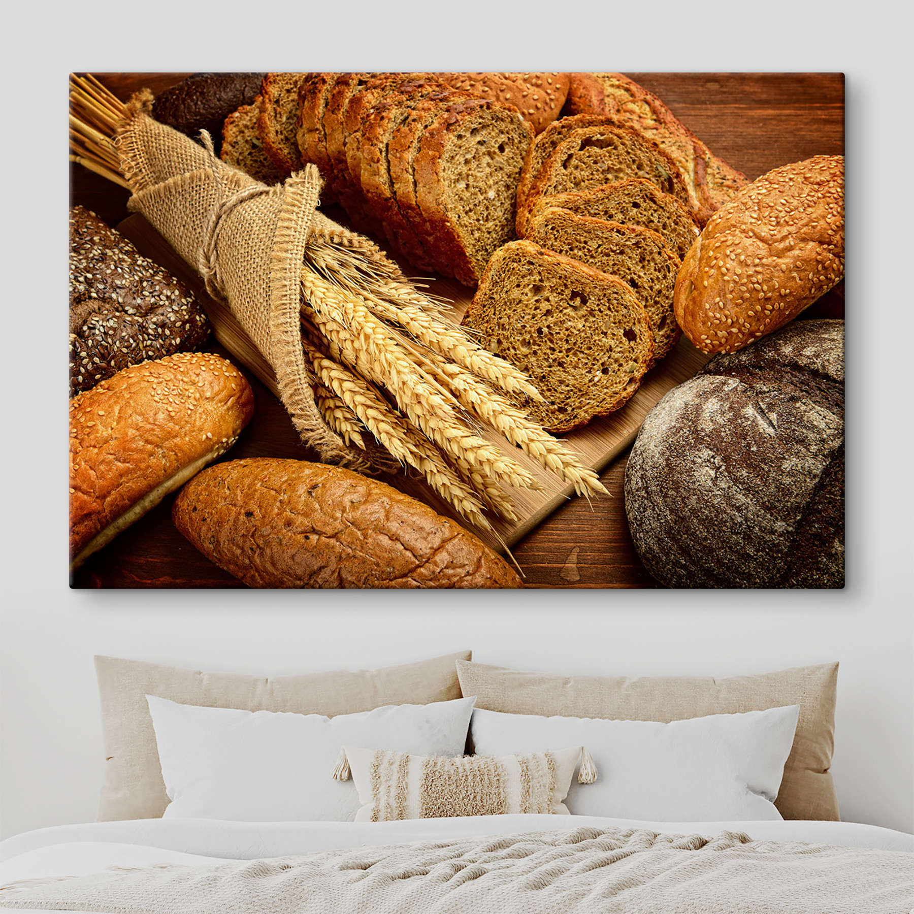 Wnieś ciepły, rustykalny klimat do swojej przestrzeni dzięki temu drukowi na płótnie z różnymi rodzajami chleba i pięknymi łodygami pszenicy. To jak przytulna piekarnia pełna uroku, czekająca, aby rozjaśnić pustą ścianę. Wyobraź sobie, że przechodzisz obok i czujesz powiew świeżo upieczonych smakołyków, nawet jeśli to tylko obraz. Idealny do kuchni lub jadalni, zachęca do rozmów przy wspólnych posiłkach i miłych wspomnień. Poza tym, kto nie kocha chleba? To uniwersalna wygoda. Dodaj ten element do swojego wystroju i pozwól mu stać się zapraszającym sercem Twojego domu.