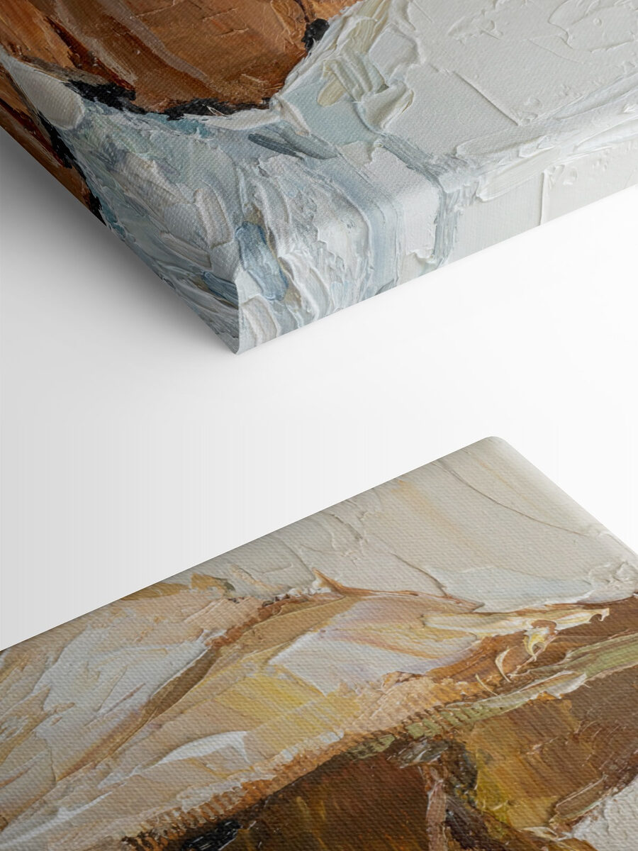 Odmień swoją przestrzeń dzięki temu urzekającemu obrazowi na płótnie przedstawiającemu kobietę w uroczym kapeluszu. Szepcze o spokojnych popołudniach i skąpanych w słońcu przygodach. Miękkie, ziemiste odcienie przywołują ciepło i komfort, dzięki czemu idealnie pasują do przytulnych zakątków lub tętniących życiem salonów. Wyobraź sobie, że przyjaciółka wchodzi do domu, widzi ten przedmiot i daje się porwać jego historii – może marzy o wakacjach lub zatraca się w ulubionej książce. To nie tylko dekoracja; to mały kawałek życia, który wnosi odrobinę elegancji i nostalgii. Zachwycający dodatek, który pobudzi do rozmowy i utrzyma dobre wibracje.