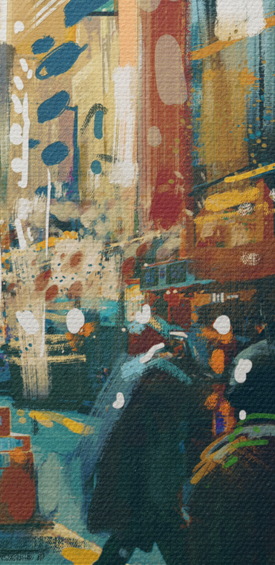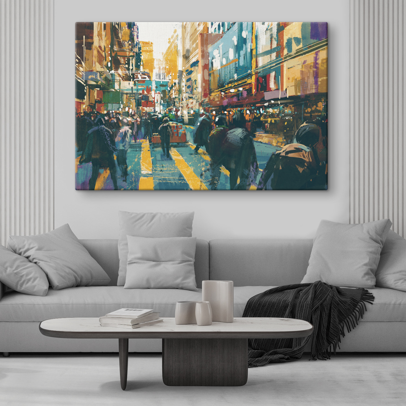 Przenieś się do tętniącego życiem miasta dzięki temu tętniącemu życiem obrazowi na płótnie. Wyobraź sobie tętniącą życiem ulicę, po której przechadza się zróżnicowana grupa ludzi, każdy z własną historią i celem. Kolorowa architektura otacza ich jak żywe tło, sprawiając, że każde spojrzenie staje się przygodą. To tak, jakby uchwycić migawkę spontanicznej chwili, nadając przestrzeni poczucie ruchu i ekscytacji. Wyobraź sobie, że wieszasz to w przytulnym zakątku – idealne do pobudzania rozmów lub po prostu marzeń o kolejnej miejskiej ucieczce. Tętno miasta we wnętrzu!