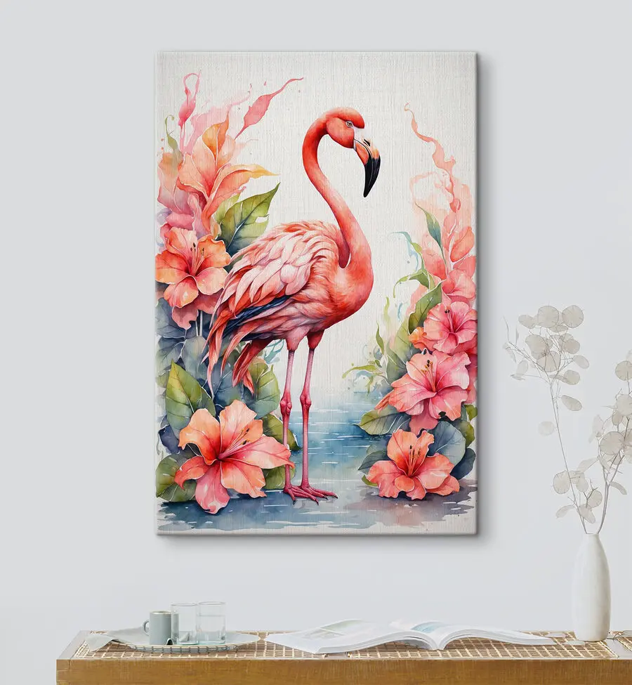 Czujesz się trochę dziko? Poznaj swój nowy ulubiony wydruk na płótnie “Painting of a Flamingo”. To piękno to nie tylko dekoracja ścienna – to arcydzieło, które natychmiast przeniesie Cię do bujnego, tropikalnego raju. Wyobraź sobie, że po długim dniu wracasz do domu i widzisz tego różowego flaminga brodzącego wśród żywych kwiatów – to jak mini wakacje na ścianie!