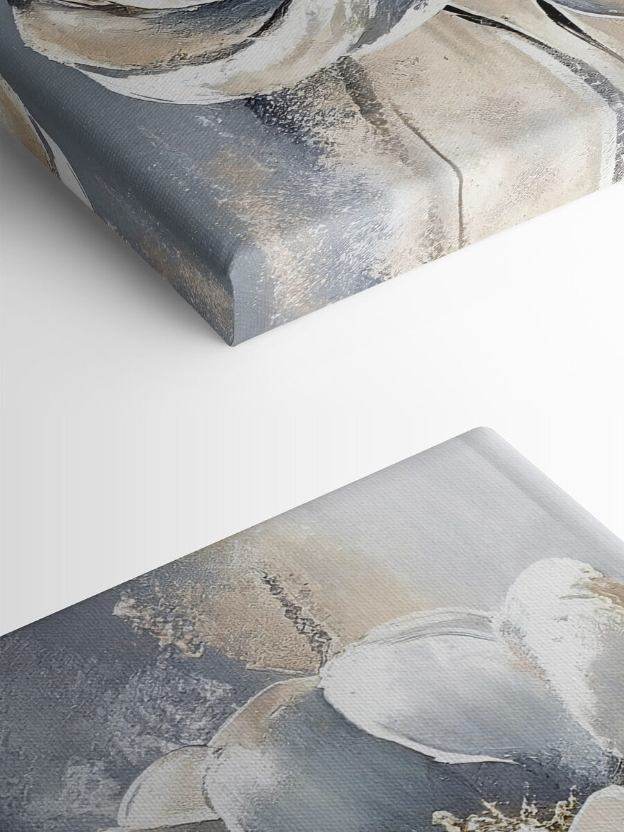 Czy kiedykolwiek myślałeś, że odrobina elegancji może delikatnie szeptać do Ciebie ze ściany? Ten wydruk na płótnie przedstawiający kwiaty na szarym tle właśnie to robi. To nie jest zwykły kwiatowy kawałek – pomyśl o chłodnych, wyrafinowanych kwiatach, które mogą niemal westchnąć w relaksie. Idealny na spokojne chwile z filiżanką herbaty. Mieszanka miękkich szarości i bieli jest jak delikatna bryza w przytulnym pokoju. Wyobraź go sobie w swojej przestrzeni życiowej, dodając odrobinę spokoju i uroku. Znajomi mogą nawet zapytać, czy zająłeś się malarstwem… mrugnięcie, mrugnięcie.