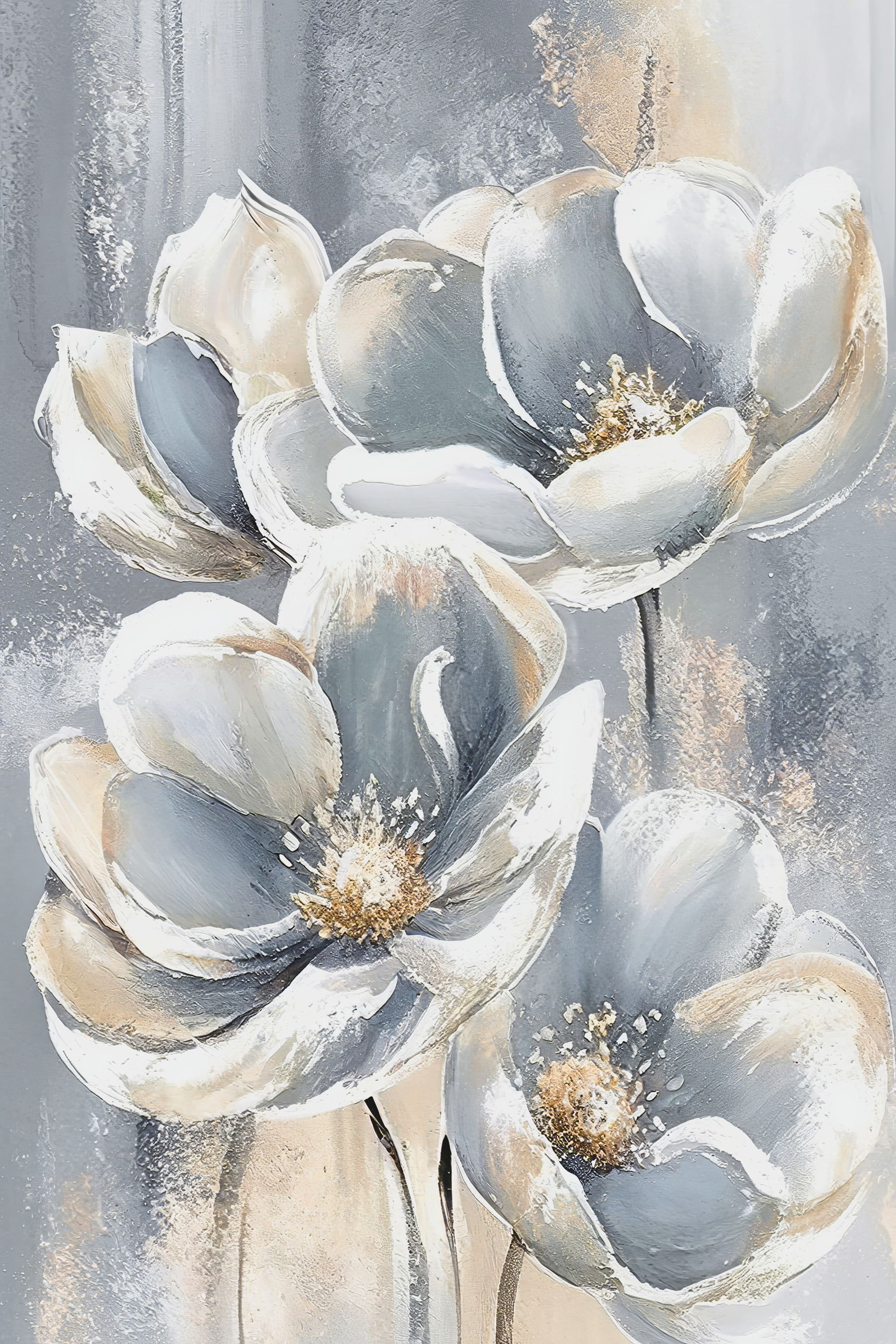 Czy kiedykolwiek myślałeś, że odrobina elegancji może delikatnie szeptać do Ciebie ze ściany? Ten wydruk na płótnie przedstawiający kwiaty na szarym tle właśnie to robi. To nie jest zwykły kwiatowy kawałek – pomyśl o chłodnych, wyrafinowanych kwiatach, które mogą niemal westchnąć w relaksie. Idealny na spokojne chwile z filiżanką herbaty. Mieszanka miękkich szarości i bieli jest jak delikatna bryza w przytulnym pokoju. Wyobraź go sobie w swojej przestrzeni życiowej, dodając odrobinę spokoju i uroku. Znajomi mogą nawet zapytać, czy zająłeś się malarstwem… mrugnięcie, mrugnięcie.