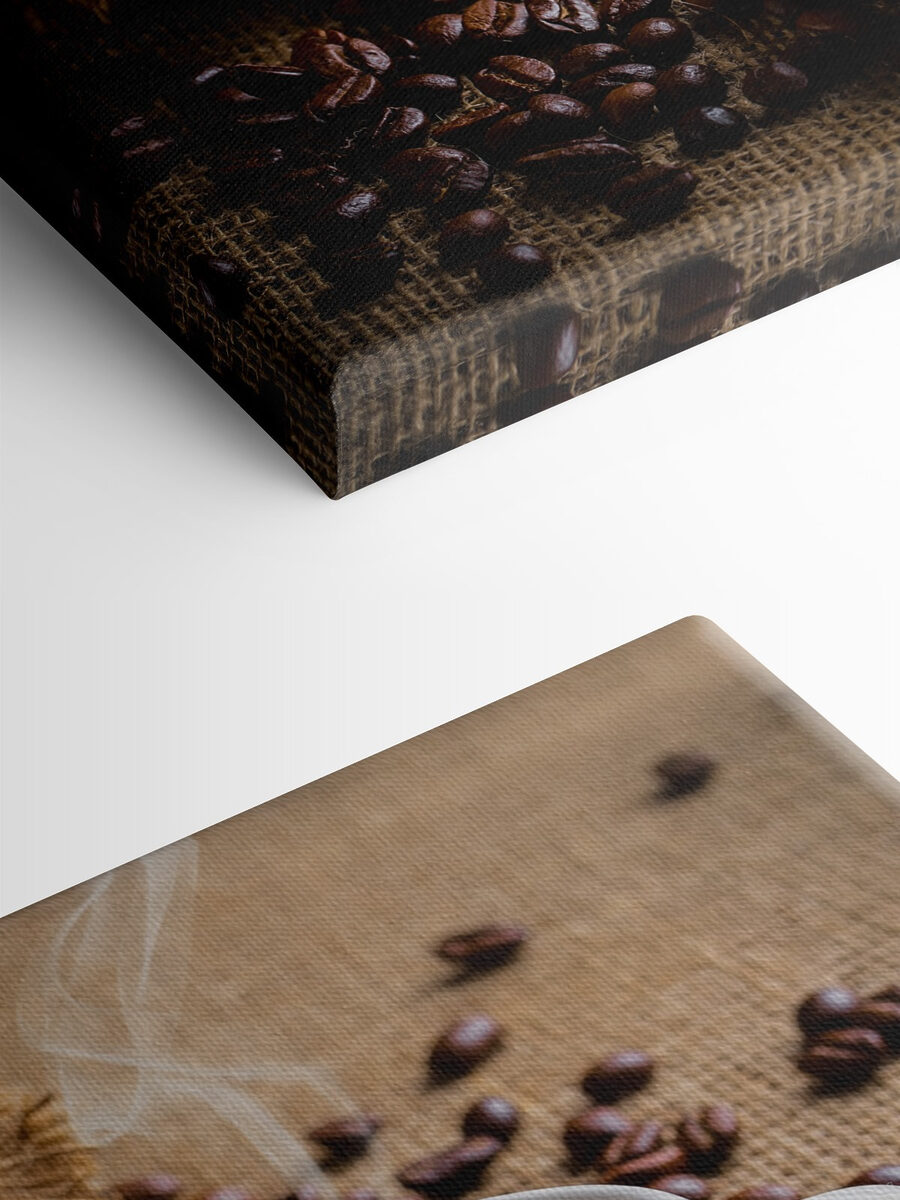 Sprawdź ten uroczy wydruk na płótnie przedstawiający parującą filiżankę kawy w połączeniu z jutowym workiem wypełnionym ziarnami kawy. To jak uchwycenie tego przytulnego, aromatycznego momentu porannej błogości bezpośrednio na ścianie. Wyobraź sobie, że wchodzisz do kuchni lub salonu i czujesz to ciepłe, rozmyte uczucie – jakbyś mógł poczuć bogaty aromat kawy. Idealny dla każdego miłośnika kawy lub każdego, kto po prostu kocha przytulną atmosferę. To jak poranna rozmowa motywacyjna ze ściany! Ponadto dodaje uroczego rustykalnego akcentu do Twojej przestrzeni. Zdecydowanie wspaniały dodatek, który rozjaśni każdy kącik kawowy lub jadalnię.