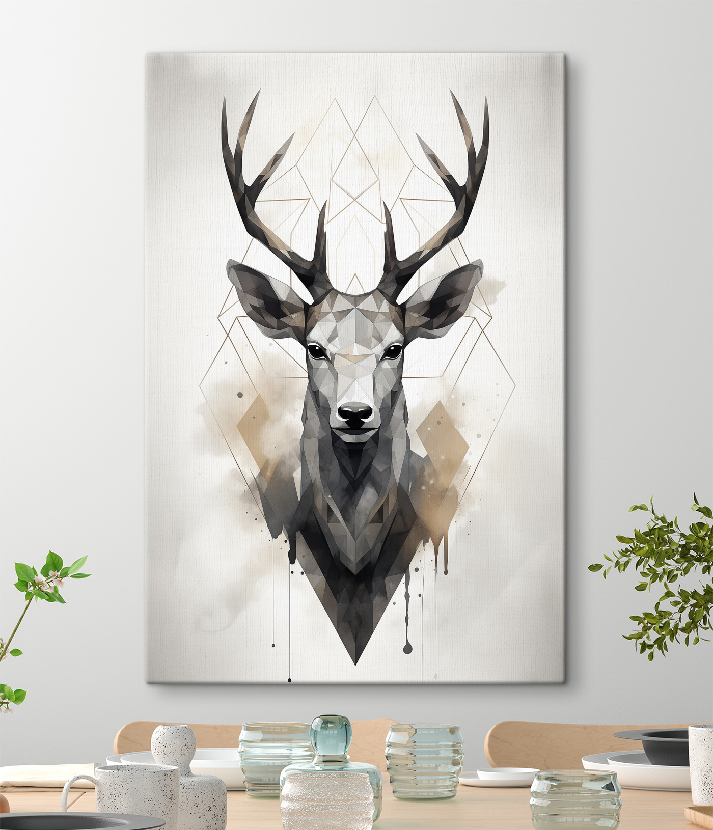 Wyobraź sobie, że wchodzisz do swojego salonu i widzisz wiszący obraz “Low Poly Deer with Antlers”. To natychmiastowy początek rozmowy – kto nie byłby zaintrygowany tym nowoczesnym geometrycznym ujęciem klasycznego leśnego stworzenia? Czyste linie i ostre kąty wnoszą odrobinę wyrafinowania, podczas gdy te miękkie, ziemiste odcienie sprawiają, że jest ciepły i zachęcający. To nie jest tylko sztuka; to oświadczenie. Idealny dla tych, którzy kochają odrobinę natury połączoną ze współczesnym klimatem. Dodatkowo, z pewnością sprawi, że twoja przestrzeń będzie bardziej “twoja”. Wystarczy wyobrazić go sobie nad kominkiem lub jako centralny element w biurze – wnosząc urok i nutę dzikiej przyrody, gdziekolwiek się pojawi!