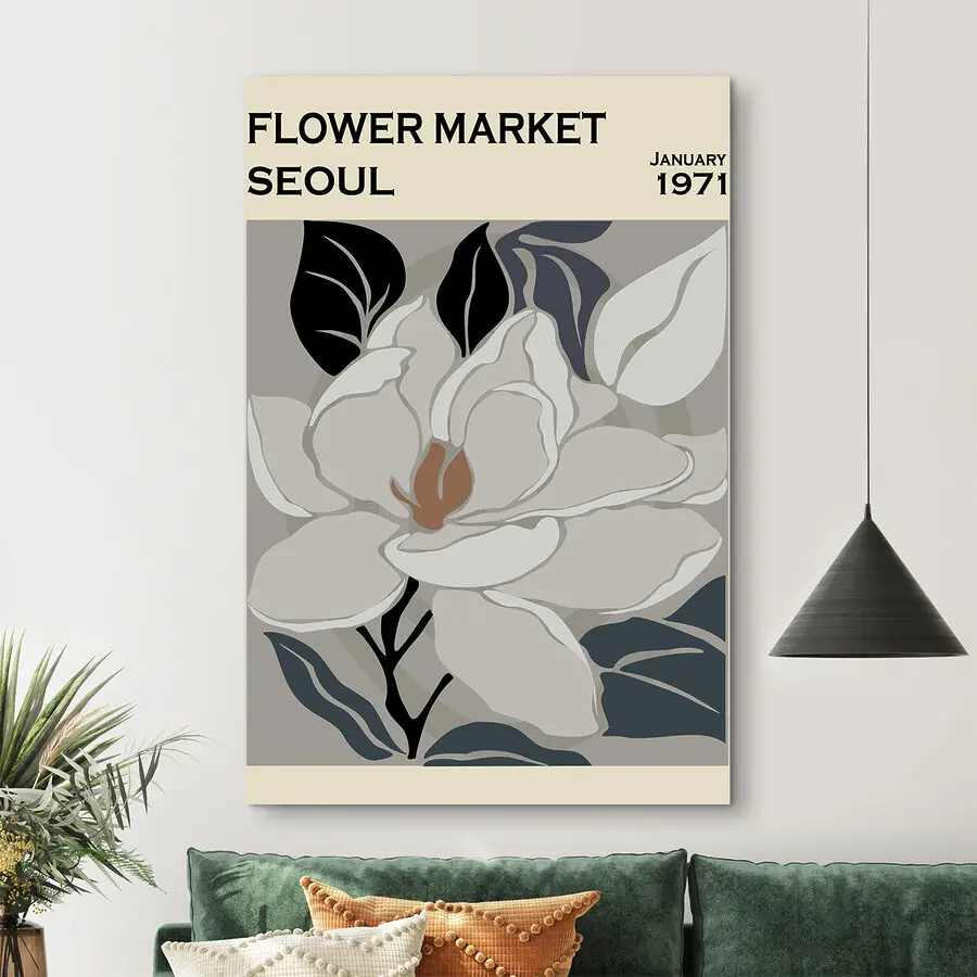 Sprawdź ten fajny wydruk na płótnie o nazwie “Biały kwiat z czarnymi liśćmi”! To totalny klimat, łączący urok boho z odrobiną klasycznej elegancji. Wyobraź sobie to piękno wiszące w Twoim salonie, dodające artystycznego charakteru, a jednocześnie zachowujące luz. Kontrast białego kwiatu z czarnymi liśćmi to czysty cukierek dla oczu. Ma ten vintage, kwiatowy targ w Seulu – idealny zarówno dla miłośników kwiatów, jak i entuzjastów sztuki. Za każdym razem, gdy na nią spojrzysz, poczujesz się, jakbyś miał w domu kawałek spokojnego, ponadczasowego ogrodu. Idealny do każdej przestrzeni wymagającej świeżej, stylowej aktualizacji!