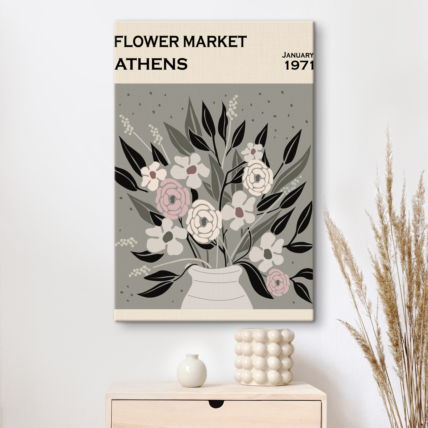 Poznaj swoją nową ulubioną grafikę ścienną – “Obraz Vintage Flowers Illustration from Athens”. Wyobraź sobie to piękno wiszące w twoim salonie; ma ten klimat boho, który jest tak fajny bez wysiłku. Kwiaty są jak mała retrospekcja do przeszłości, dzięki czemu czujesz się, jakbyś wędrował po targu kwiatowym w Atenach w latach 70-tych. Stonowane kolory doskonale komponują się z każdym wystrojem, tworząc relaksujący, wyluzowany nastrój. Szczerze mówiąc, to tak, jakby wnieść kawałek historii do swojego domu – bez kurzu. Niezależnie od tego, czy jest to dla fanatyka boho, czy każdego, kto po prostu uwielbia dobre kwiatowe chwile, ten kawałek jest totalną wygraną. Jest jak powiew świeżego powietrza, a za każdym razem, gdy na niego spojrzysz, poczujesz to ciepłe, szczęśliwe uczucie w środku. Ponadto jest to świetny początek rozmowy – “Och, ta mała rzecz? Po prostu piękny, inspirowany stylem vintage przedmiot z Aten”. Uwielbiam to.