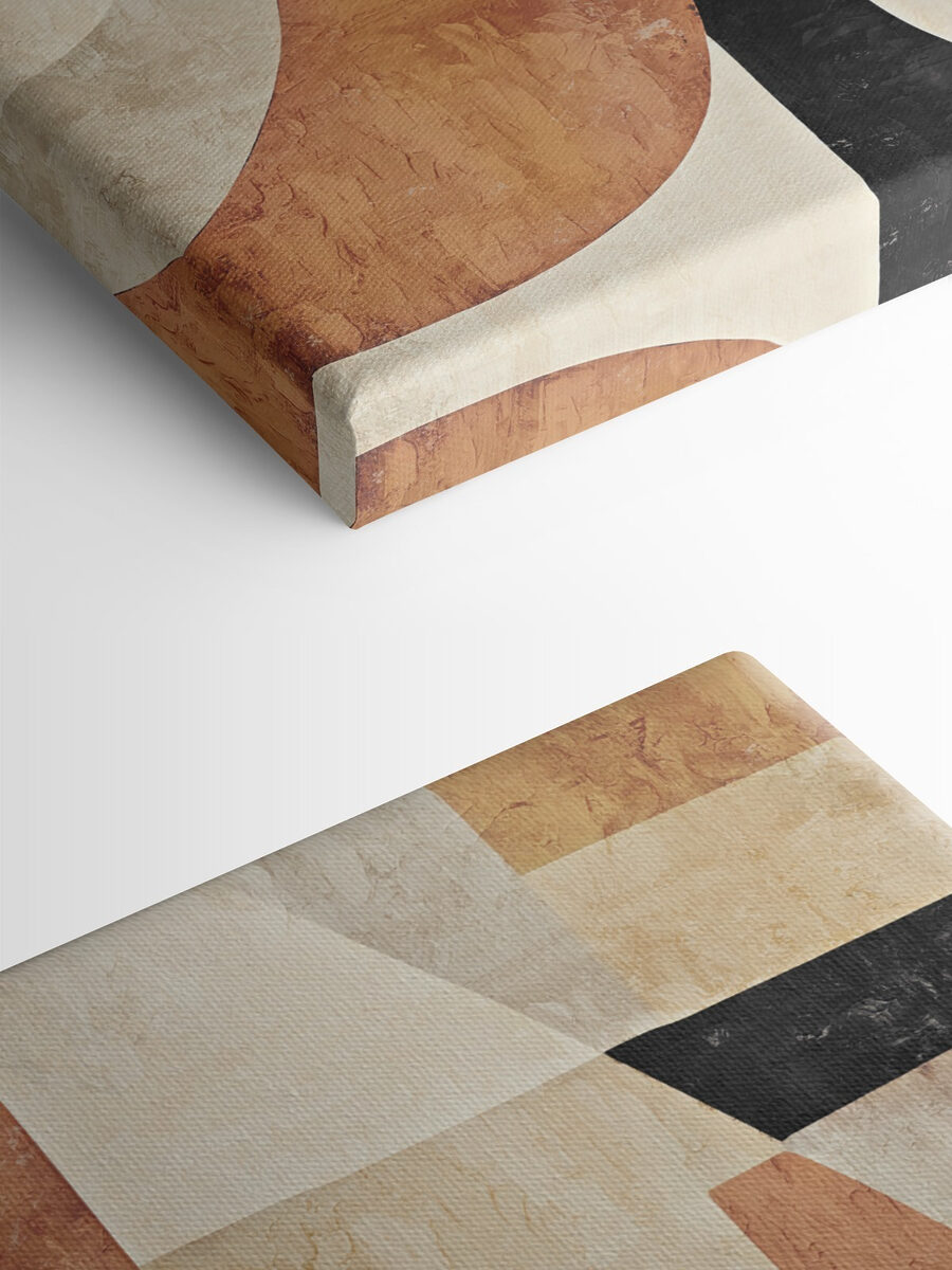 Przekształcenie nudnej ściany w oszałamiający punkt centralny jest łatwe dzięki temu minimalistycznemu obrazowi na płótnie. Wyobraź sobie, że wisi nad przytulną kanapą, bez wysiłku łącząc przestrzeń. Kojąca paleta ciepłych odcieni i geometrycznych kształtów zachęca do ciepła, sprawiając, że każde pomieszczenie staje się bardziej przytulne. To jak pocieszający uścisk dla twoich ścian. Patrząc na nią, można nawet znaleźć inspirację, popijając kawę lub przeglądając książkę. Ponadto jest na tyle wszechstronny, że pasuje do każdego klimatu, czy to nowoczesnego, boho, czy nieco eklektycznego. Idealny do dodania charakteru bez krzyczenia “Spójrz na mnie!” – ponieważ czasami subtelność ma swój urok.
