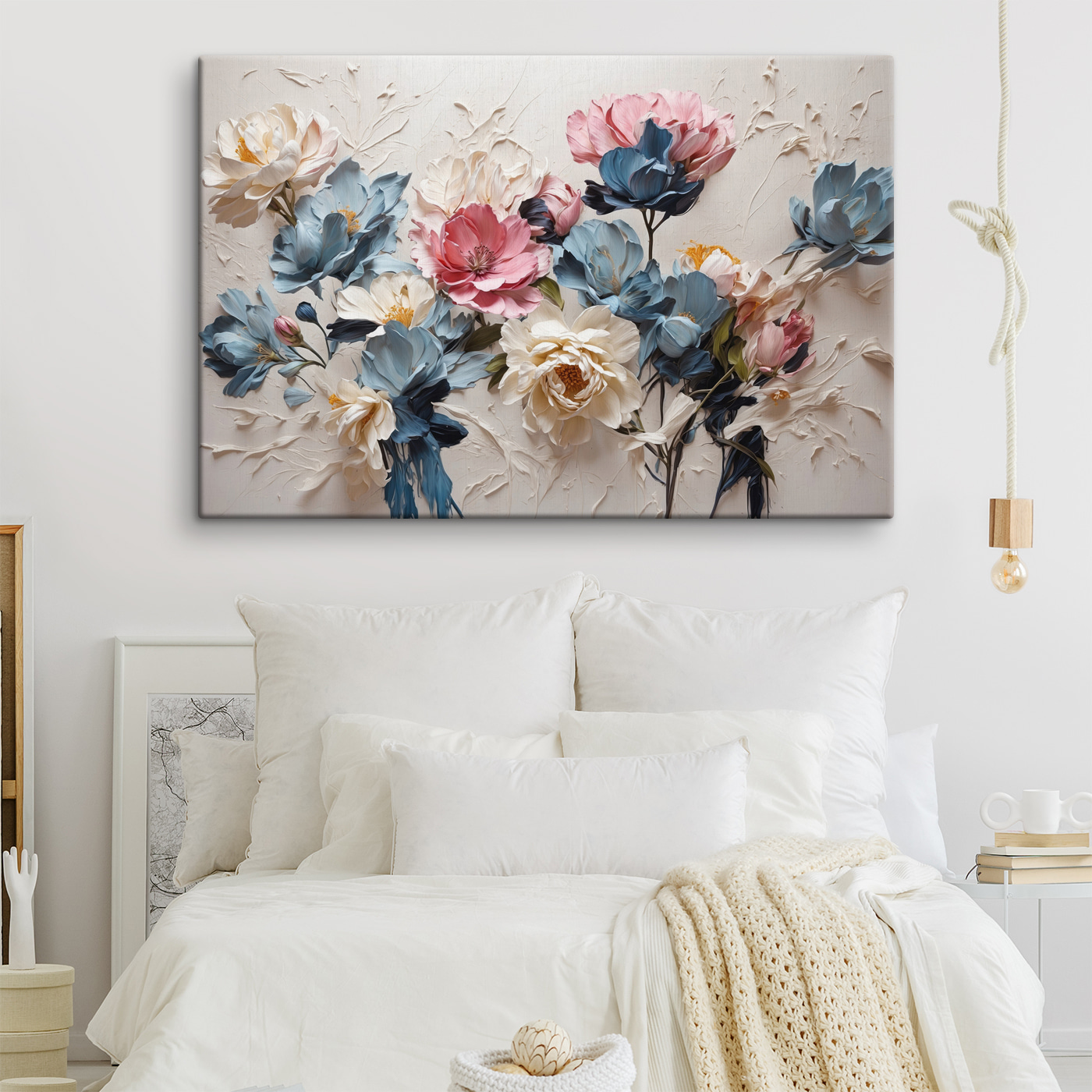 Dodaj powiew świeżości do każdego pomieszczenia dzięki temu żywemu drukowi na płótnie z pastelowymi kwiatami, które praktycznie wyskakują ze ściany. Wyobraź sobie, że wchodzisz i witają Cię delikatne róże i chłodne błękity, niczym delikatny uścisk wiosennego poranka. To nie tylko grafika ścienna; to poprawiacz nastroju, który szepcze: “Nie zapomnij zatrzymać się i powąchać róże” – lub w tym przypadku piwonie i tulipany! Idealny do przytulnego kącika lub tętniącej życiem przestrzeni życiowej, ten kawałek przynosi odrobinę koloru i radości, sprawiając, że każde spojrzenie czuje się jak mini ucieczka do pięknego ogrodu. Kto by tego nie pokochał?