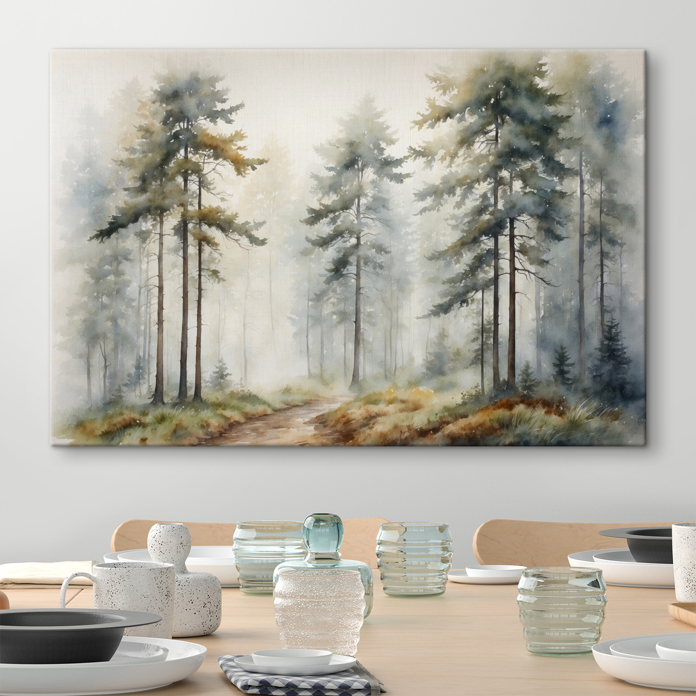 Ten wydruk na płótnie przypomina spokojną ucieczkę na łono natury. Wyobraź sobie, że wędrujesz przytulną leśną ścieżką, powietrze jest rześkie i pełne życia, i widzisz tę piękną scenę, która sprawia, że myślisz o porannej mgle i spokojnych chwilach. “Watercolor Painting of a Forest” jest idealny do dodania odrobiny spokoju do twojej przestrzeni. Jest częścią naszych kolekcji Nature Canvas Art i Popular Canvas Art. Ten obraz ma delikatne kolory i spokojny nastrój, który może sprawić, że każdy pokój poczuje się jak osobisty azyl. Niezależnie od tego, czy chodzi o salon, sypialnię czy biuro, ten wydruk oferuje odrobinę spokoju i ciepła, dzięki czemu jest uroczym dodatkiem do atmosfery domu. Wyobraź sobie relaks po długim dniu lub dzielenie się spokojną filiżanką kawy, z tym nadrukiem w tle – po prostu czysta błogość.