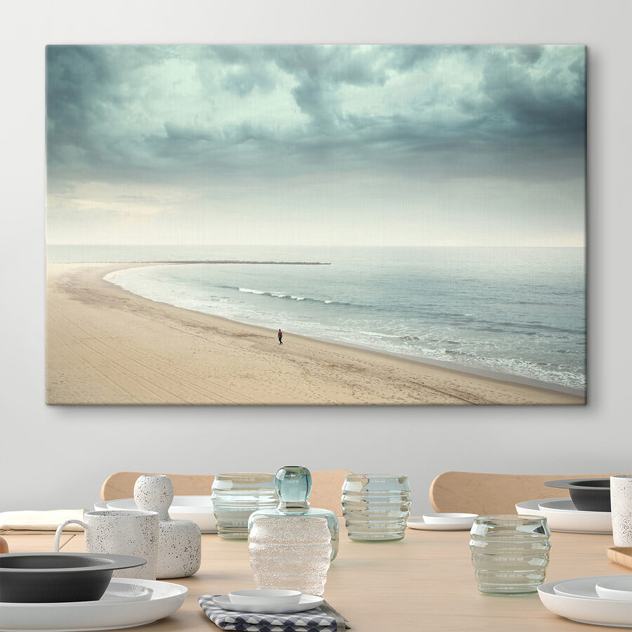 Czy to nie jest po prostu oszałamiające? Wyobraź sobie spacer wzdłuż plaży o świcie, delikatne fale szepczące tajemnice i horyzont rozciągający się tak daleko, jak okiem sięgnąć. Ten wydruk na płótnie “Person walking on a beach” oddaje ten marzycielski klimat. Wyobraź go sobie na swojej ścianie, wnosząc kawałek tego spokojnego, niekończącego się oceanu do swojego domu. Delikatne odcienie i samotny spacerowicz przywołują poczucie spokoju, przypominają o oddychaniu i zwolnieniu tempa. Idealny dla każdego miłośnika przyrody lub przytulnego kącika do czytania. Niech ten kawałek spokoju przywita się z Twoim wystrojem!