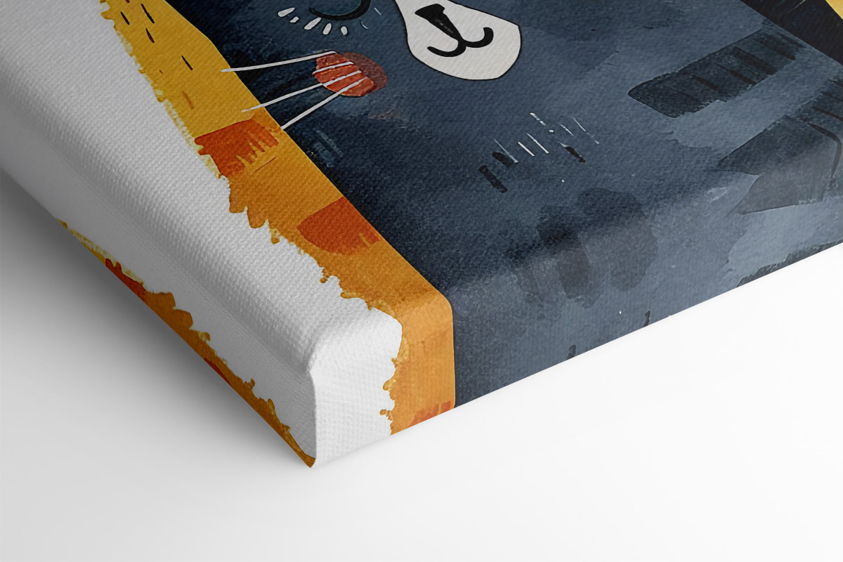 Świetnie nadaje się do stworzenia zabawnej atmosfery, jak z bajki. Powieś go w pokoju dziecięcym i obserwuj, jak szybko stanie się ich ulubionym! Pomyśl o bajkach na dobranoc o fantastycznych kotach. Lub umieść go w swojej przestrzeni życiowej – natychmiastowy początek rozmowy. “Och, ten niebieski kot? Nazywa się Whisker McGee!” Kolory są jasne, ale miękkie, dzięki czemu czujesz się jak w domu, niezależnie od tego, czy masz pięć czy pięćdziesiąt pięć lat.