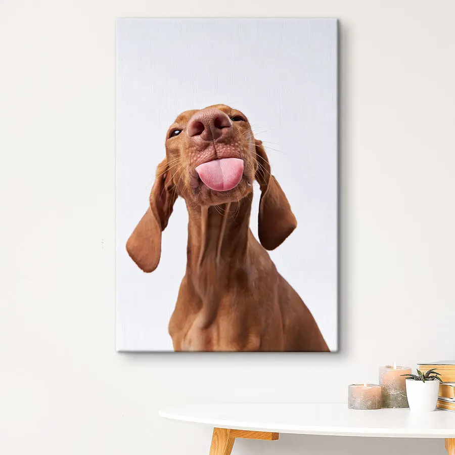 Rozjaśnij każde pomieszczenie dzięki temu zabawnemu drukowi na płótnie przedstawiającemu szczeniaka wystawiającego język – klasyczny ruch głupka! Wyobraź sobie, że przechodzisz obok i widzisz tę głupią minę. To rodzaj sztuki, która zachęca do uśmiechu i może chichotu lub dwóch. Idealny do przytulnego kącika w salonie lub serca przestrzeni miłośnika zwierząt, ten nadruk wywołuje radość i poprawia nastrój. To tak, jakby mieć w pobliżu futrzanego przyjaciela, zawsze gotowego, by uczynić twój dzień nieco jaśniejszym. Idealny na rodzinne spotkania lub po prostu, aby wywołać zabawne rozmowy.