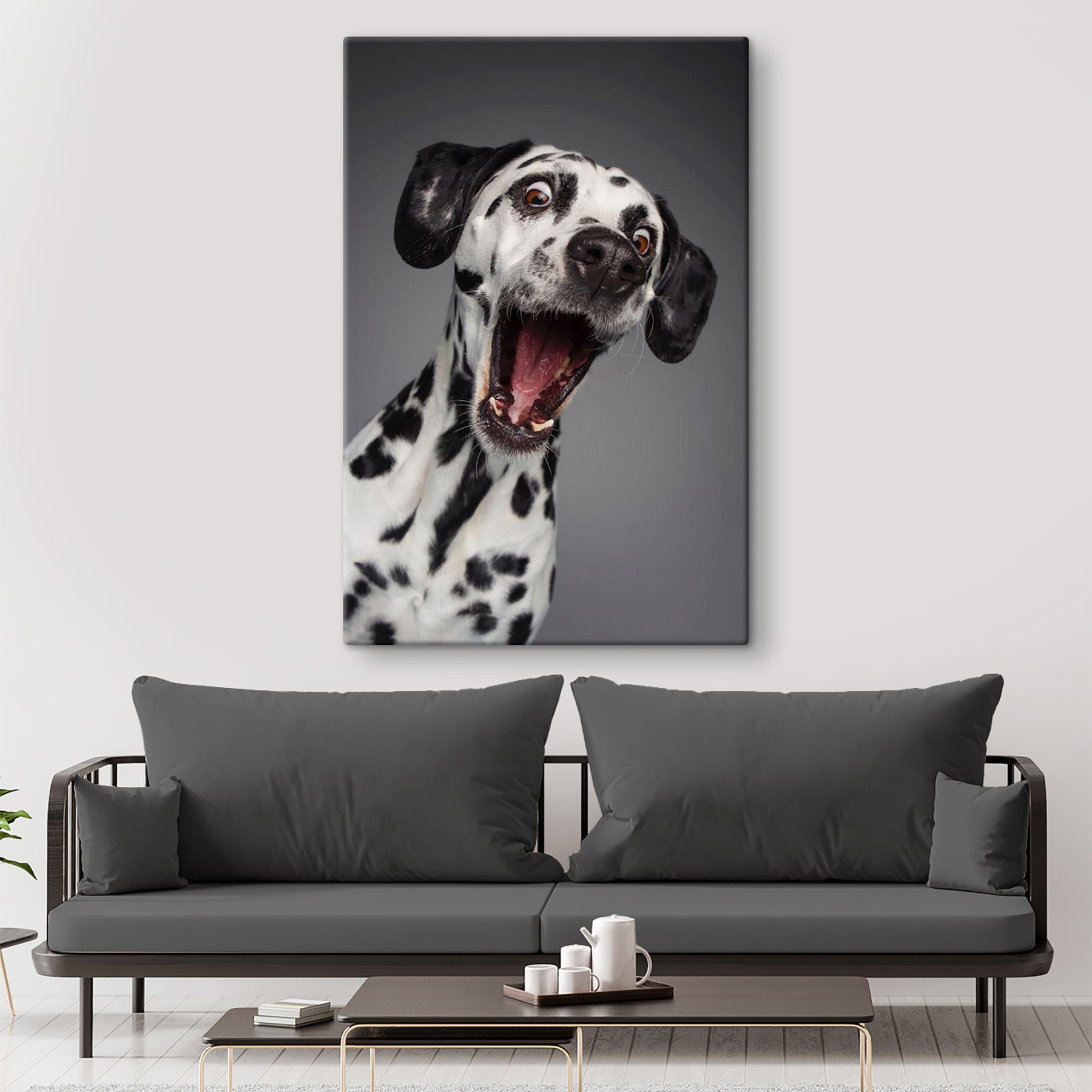 Wyobraź sobie, że wchodzisz do swojego pokoju i zostajesz powitany przez tego uroczego dalmatyńczyka z szeroko otwartymi oczami i zabawnie zaskoczonym wyrazem twarzy na wydruku na płótnie. To jak uchwycenie chwili czystego psiego dramatu, który wywoła uśmiech na twarzy każdego. Idealny dla tych, którzy kochają odrobinę kaprysu w swoim wystroju. Ten obraz wniesie radosny i zabawny nastrój do każdej przestrzeni – tak jakby Twój pupil właśnie usłyszał słowo “spacer” lub zauważył niespodziewany smakołyk!