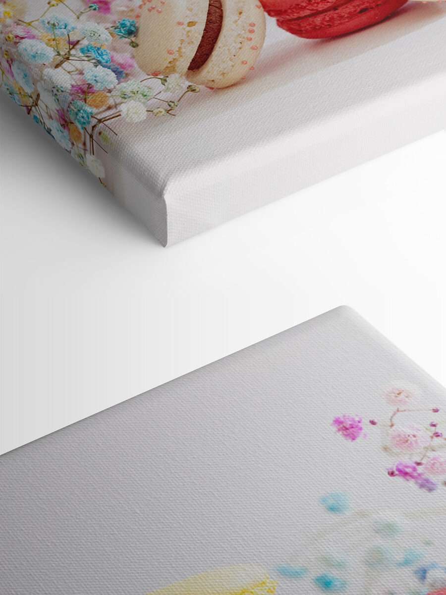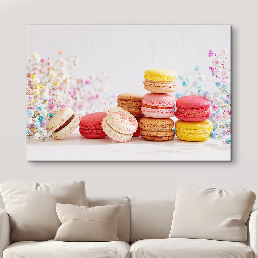 Rozjaśnij każde pomieszczenie za pomocą tego uroczego płótna, które przedstawia kolorowe makaroniki umieszczone wśród delikatnych kwiatów. To jak słodkie zaproszenie do rozkoszowania się bez kalorii. Każdy makaronik wyskakuje z kolorem, tańcząc figlarnie na delikatnym tle, inspirując uśmiechy i marzenia o niewymuszonej elegancji. Wyobraź sobie ten element wiszący w przytulnej kuchni lub uroczym kąciku kawiarni; natychmiast wnosi nutę paryskiego stylu. Idealny dla każdego, kto wierzy, że życiem należy się cieszyć, delektując się jednym smakołykiem na raz. To coś więcej niż tylko sztuka; to mała chwila radości.