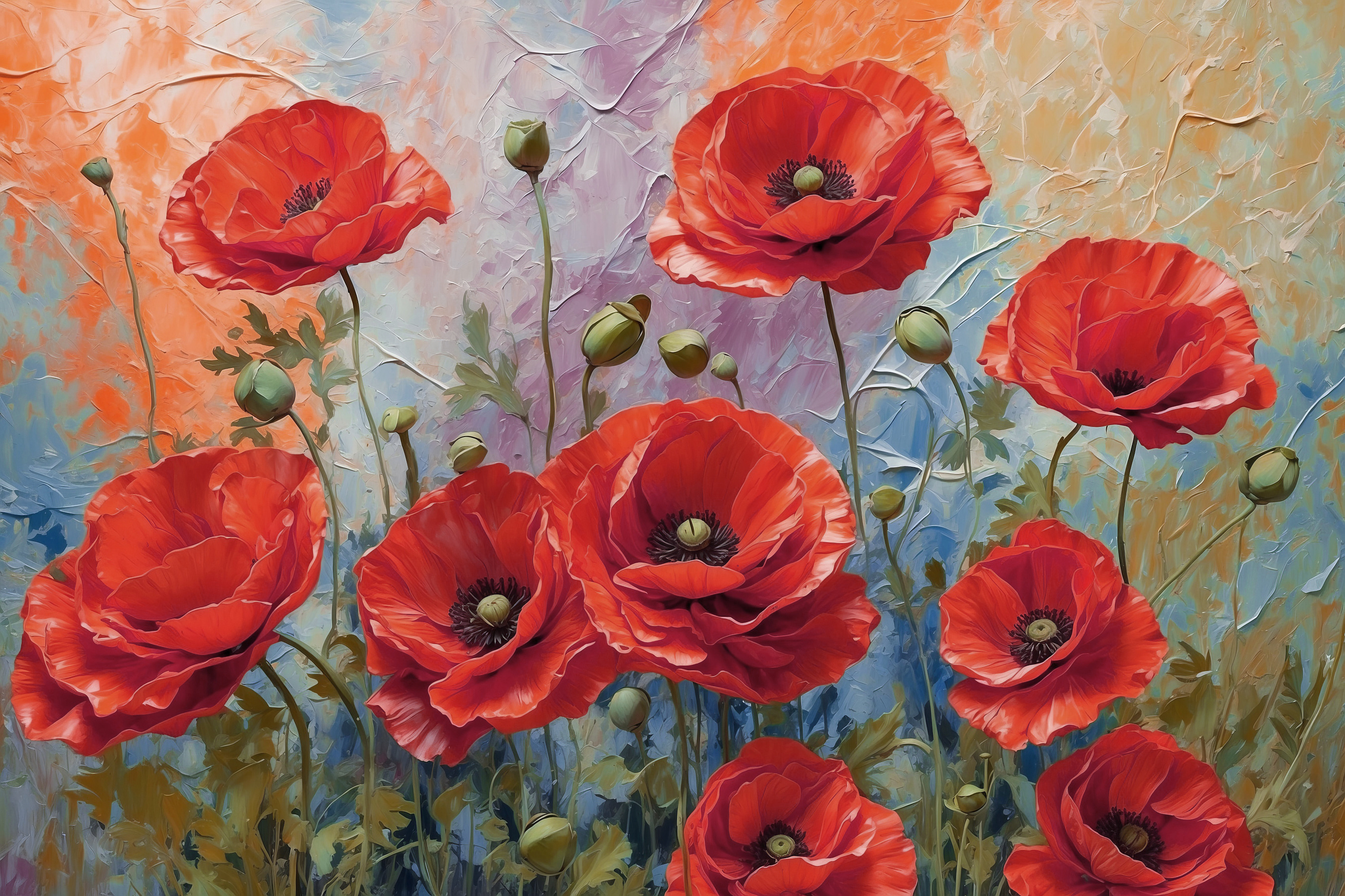 Czy kiedykolwiek miałeś wrażenie, że Twoje ściany są po prostu… nijakie? Tchnij w nie życie dzięki temu obrazowi na płótnie “Vibrant poppies under painted sky”. Poważnie, to jak wejście do snu, w którym maki tańczą na wietrze! Sposób, w jaki te jaskrawe czerwienie wyskakują na sennym pastelowym tle – to czysta magia. Wyobraź sobie to piękno w swoim salonie, dodając odrobinę koloru, który sprawi, że twoja przestrzeń będzie szczęśliwsza, świeższa i po prostu bardziej twoja. Szczerze mówiąc, może nawet sprawić, że będziesz chciał się zatrzymać i powąchać nieistniejące kwiaty za każdym razem, gdy będziesz obok nich przechodził. Idealny dla miłośników kwiatów i każdego, komu przyda się odrobina radosnego, artystycznego chaosu w wystroju.