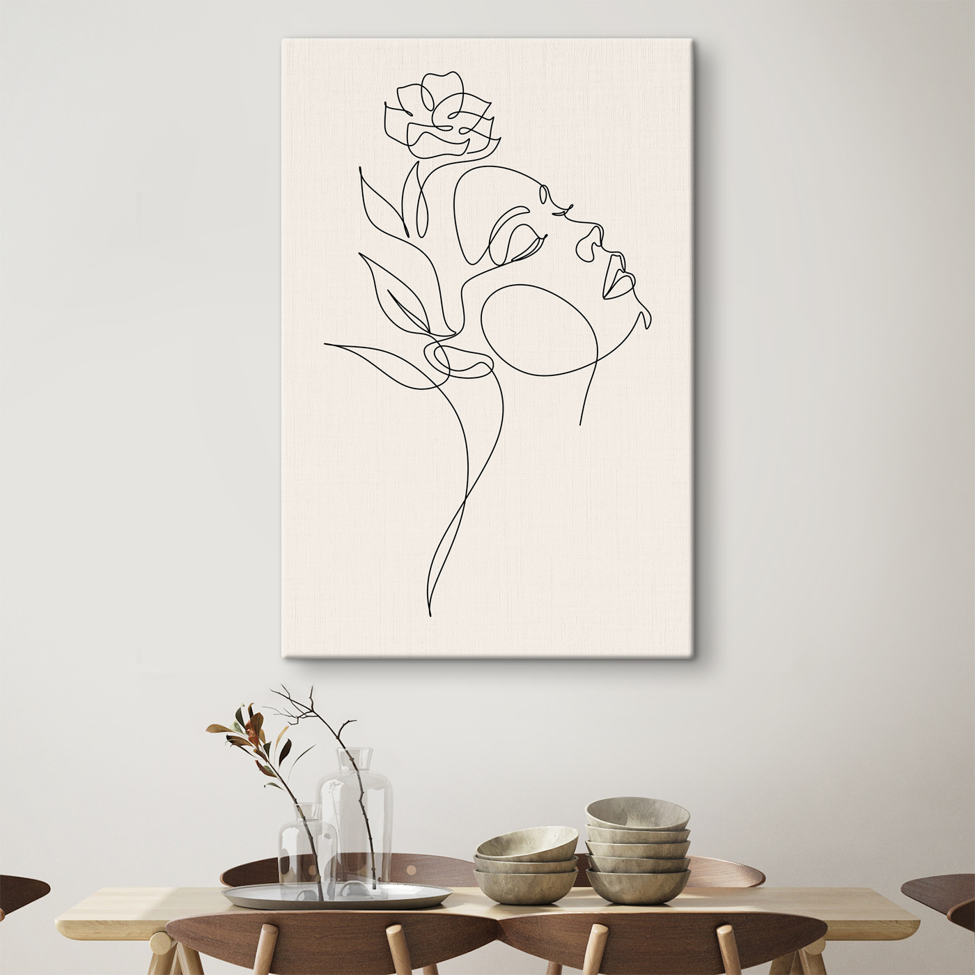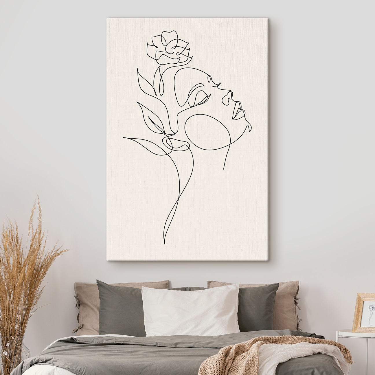 Ten wydruk na płótnie oddaje istotę piękna i prostoty dzięki hipnotyzującemu rysunkowi kobiecej twarzy. Chodzi o czyste linie i delikatne krzywizny, które łączą się, tworząc coś, co wydaje się zarówno nowoczesne, jak i ponadczasowe. Wyobraź sobie, że wisi w przytulnym salonie lub spokojnej sypialni, gdzie pobudza do rozmów i zachęca do marzeń. To jak posiadanie dzieła sztuki, które szepcze tajemnice i historie, zachęcając do zatrzymania się i docenienia chwili. Idealny dla tych, którzy kochają unikalny wystrój, który dodaje odrobinę osobowości bez krzyku o uwagę. Idealny do tworzenia atmosfery, która jest ciepła i zachęcająca.